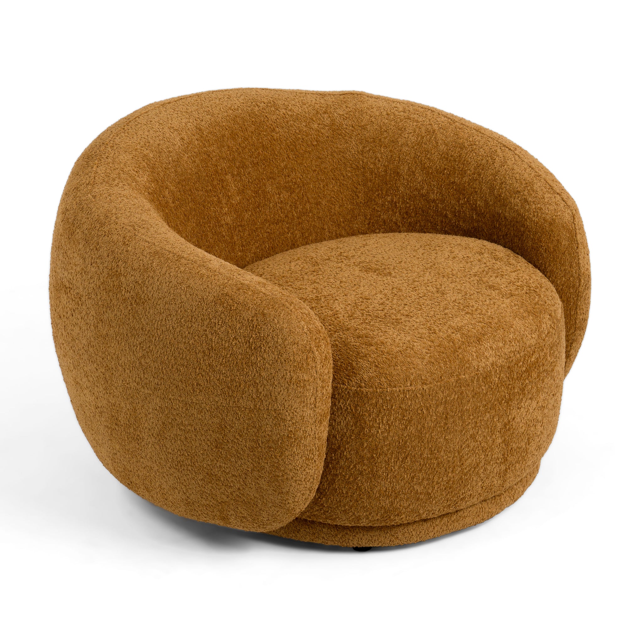 The Andrew Accent chair is a simple and elegant piece with a contemporary take on a mid-century design. The Andrew sports a rounded design and is upholstered in light orange fabric. It pairs with the matching Andrew three-seater sofa.
