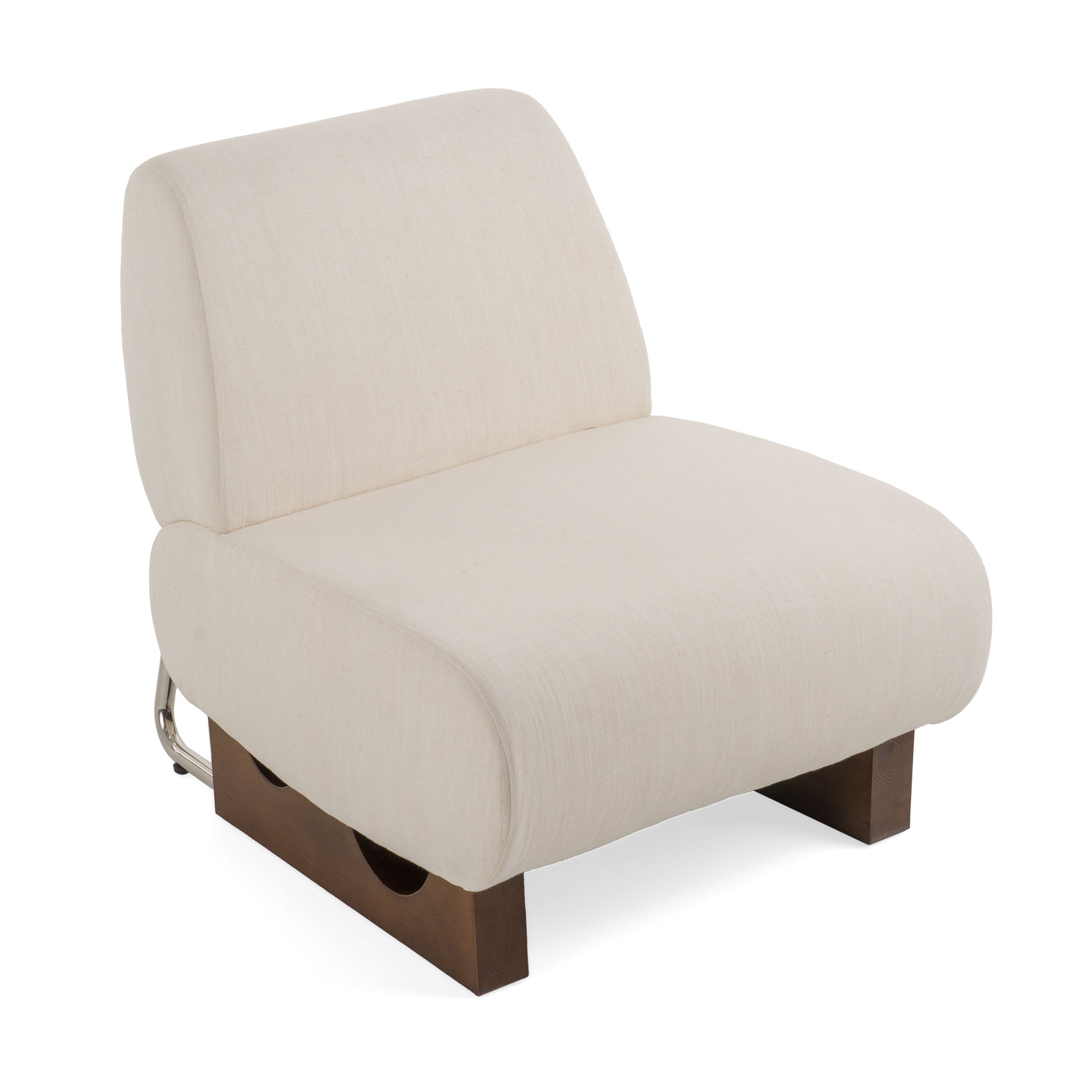 The Modrest Barbara Modern Off White Accent Chair is a stylish addition to any living space. Upholstered in an elegant off-white polyester blend fabric, it exudes sophistication. The chair features a sculptural round pillow back, complemented by walnut solid oak wood legs and a stainless steel frame back support with wood detail. This chair combines comfort and aesthetics seamlessly. No assembly is required, making it a hassle-free choice for your home