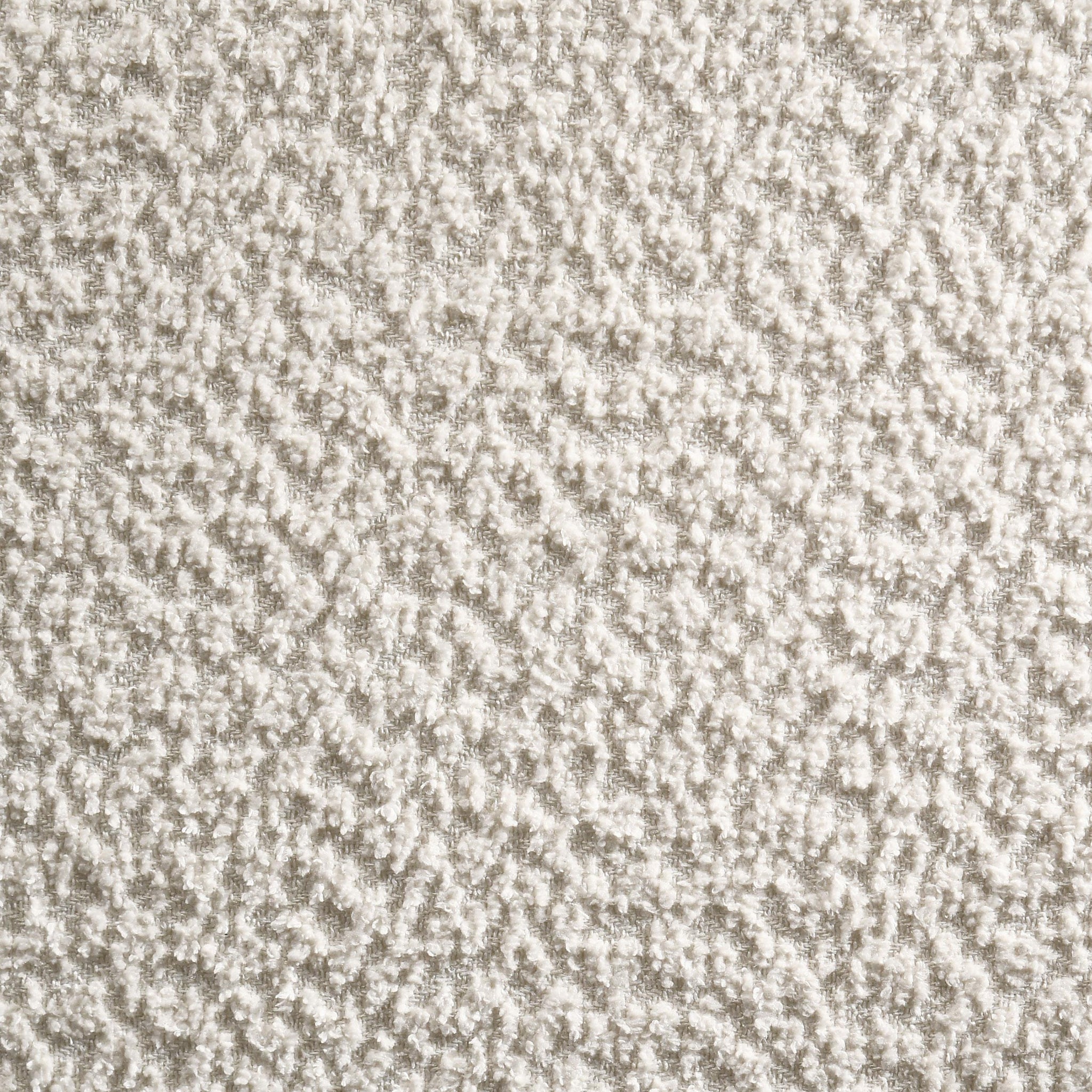 Plush foam cushioning is upholstered in soft, textured fabric in a neutral hue
