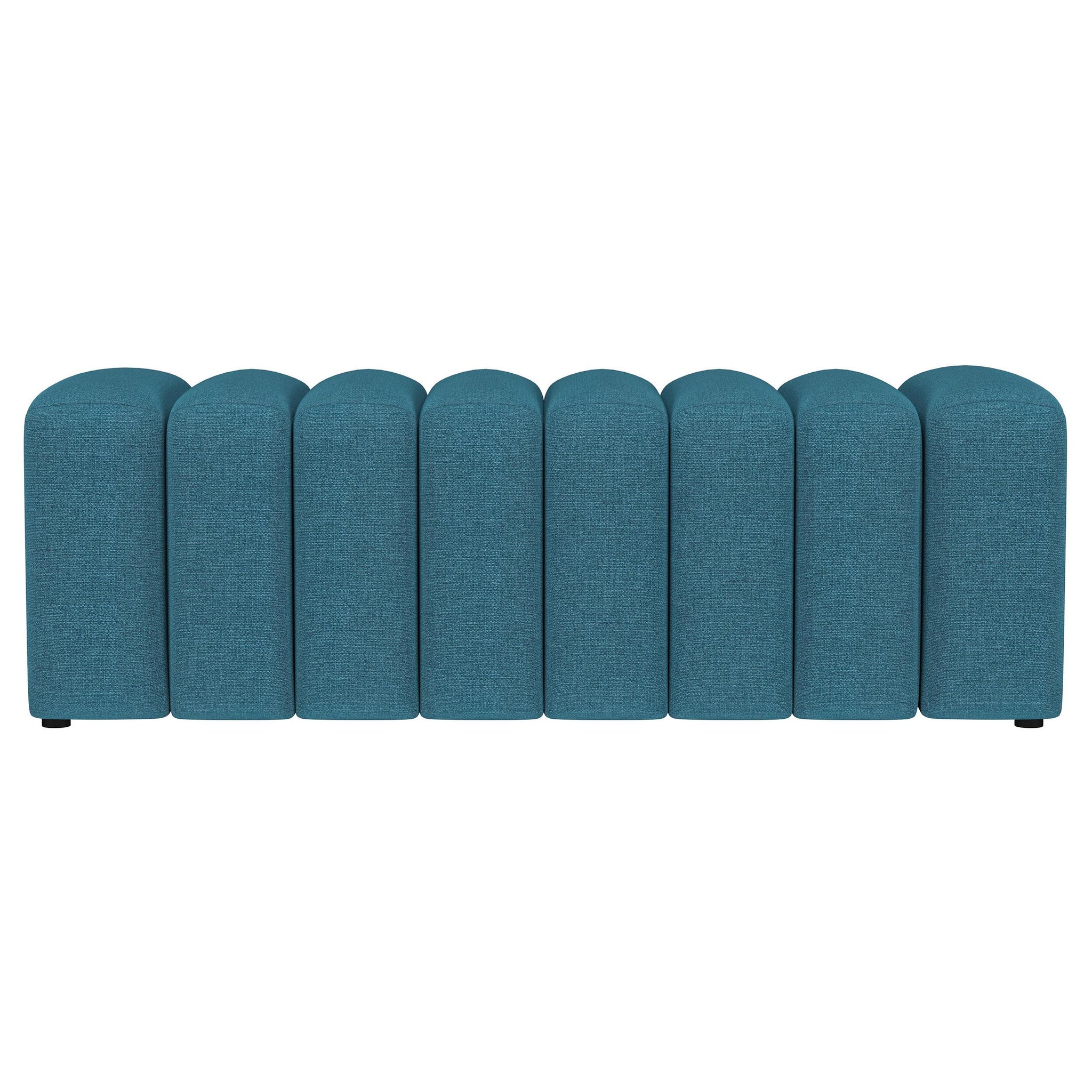 Introduce glam texture and dimension with a decorative upholstered bench. This modern creation features an undulating silhouette without arms or a back, offering sleek style and seating. Perfect for a sophisticated foyer or living room, it adds a pop of color and rich dimensionality with subtle variation in textured fabric. It makes a chic replacement for a coffee table in a linear sitting area, complete with foam cushioning thats firm enough to host a serving tray. Minimal feet create a seamless look and feel in any setting.