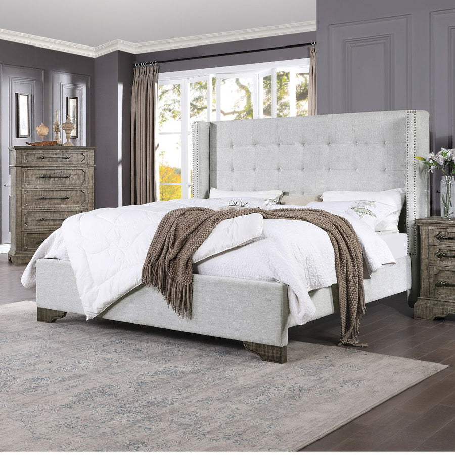Artesia - Eastern King Bed - Tan Fabric & Salvaged Natural