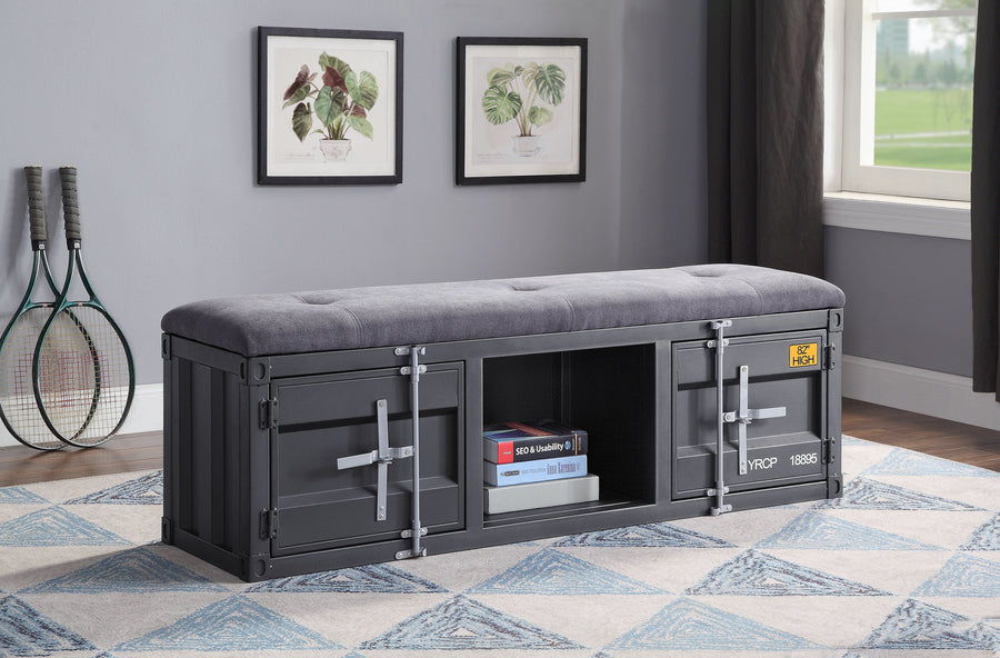 Cargo - Bench With Storage - Gray Fabric & Gunmetal