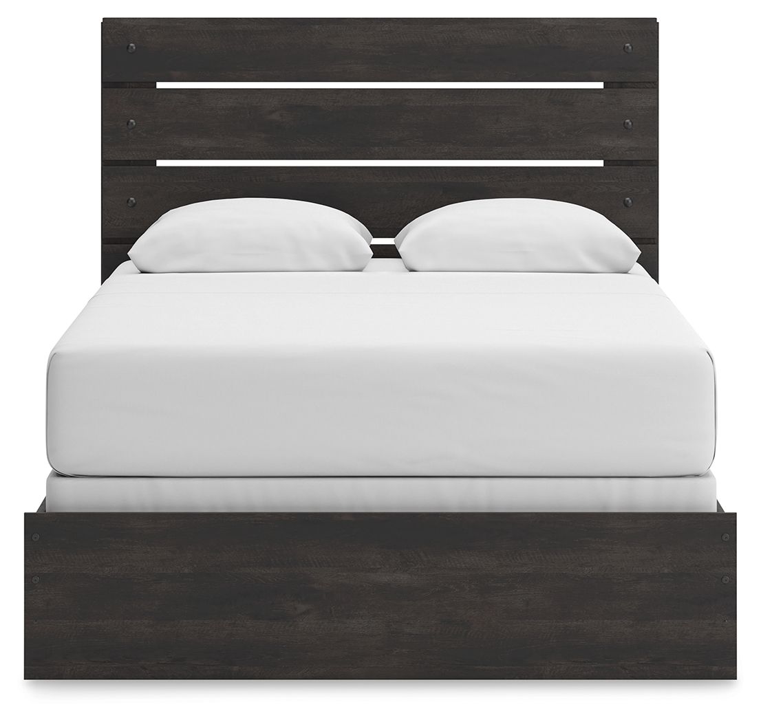 This queen panel bed puts a casually chic twist on everyday function. Its rustic charcoal finish pairs well with other neutrals and pops of color alike, giving you the flexibility to change up your aesthetic as you please. From morning to bedtime, it completes your restful retreat in exceptional form.