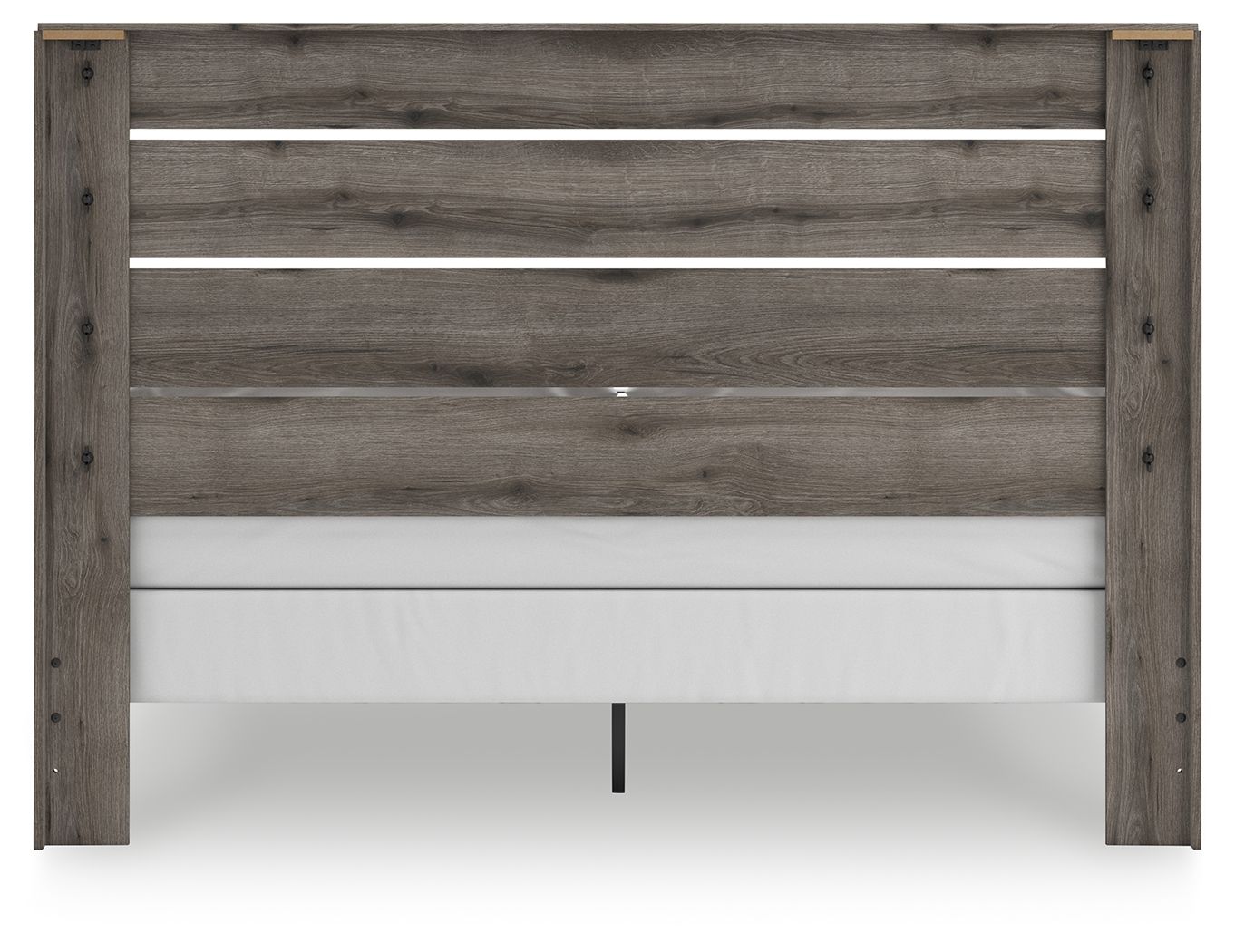 Combining a casual aesthetic with functional flair, this king panel bed suits styles from rustic to industrial. The headboards slatted panel design has an easygoing character thats sure to please. Dressed in a chic weathered gray hue, it brings a charmingly curated vibe to bedtime.