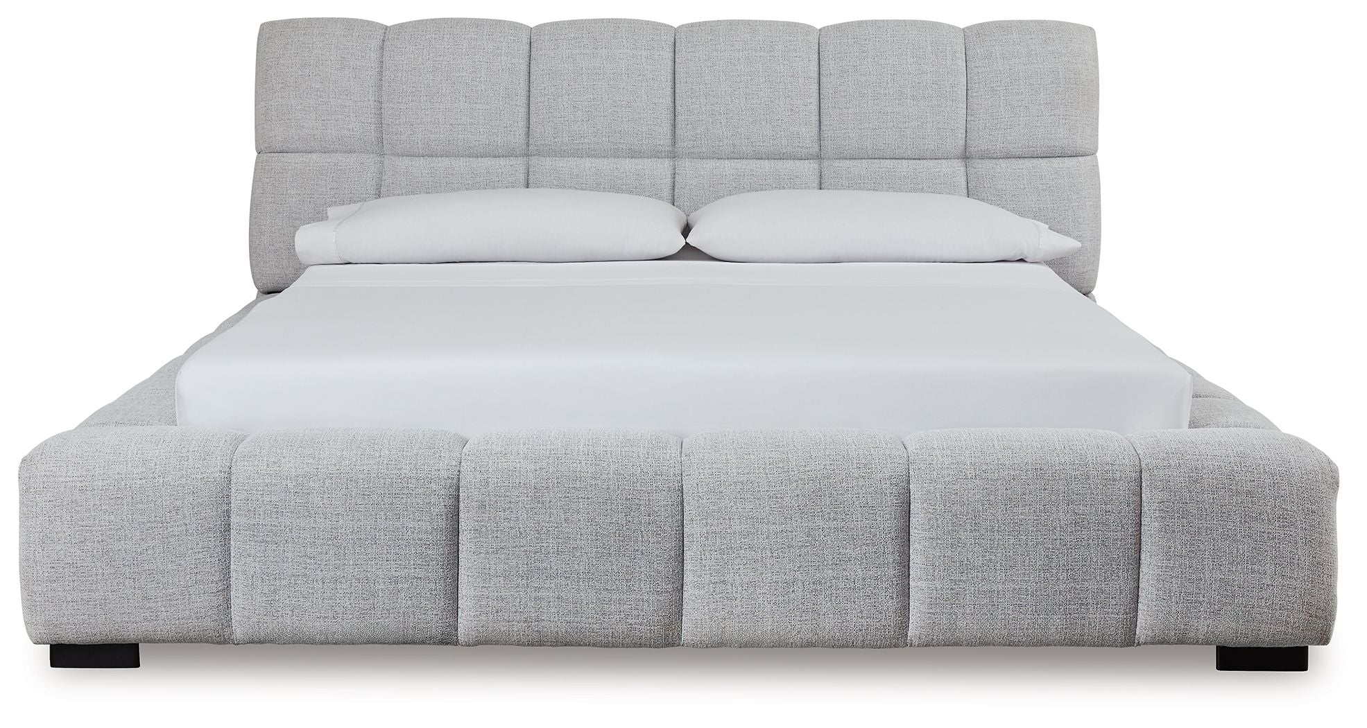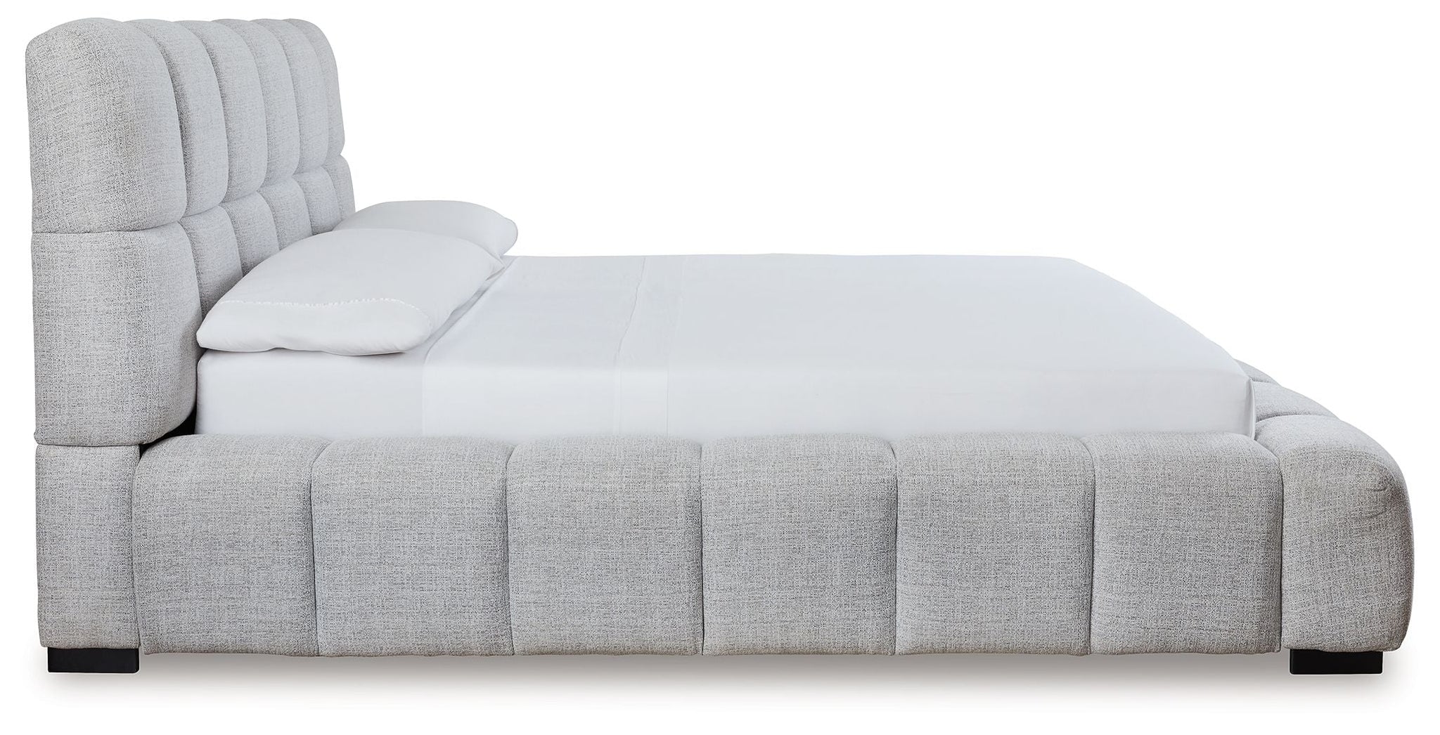 A divine merger of casual and contemporary design, this California king upholstered bed is the upgrade youve been dreaming of. Plush, deep pillowed tufting creates an impressive silhouette thats just as comfortable as it is stylish. And the textured light gray Next-Gen Nuvella™ performance fabric is soft and easy to clean. Now theres a bed with staying power.