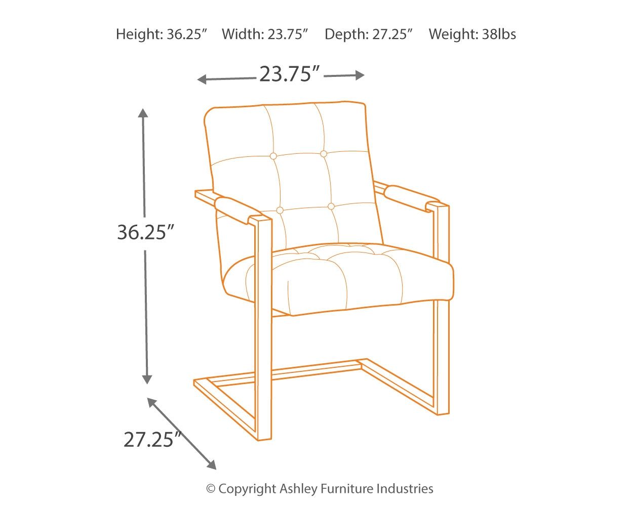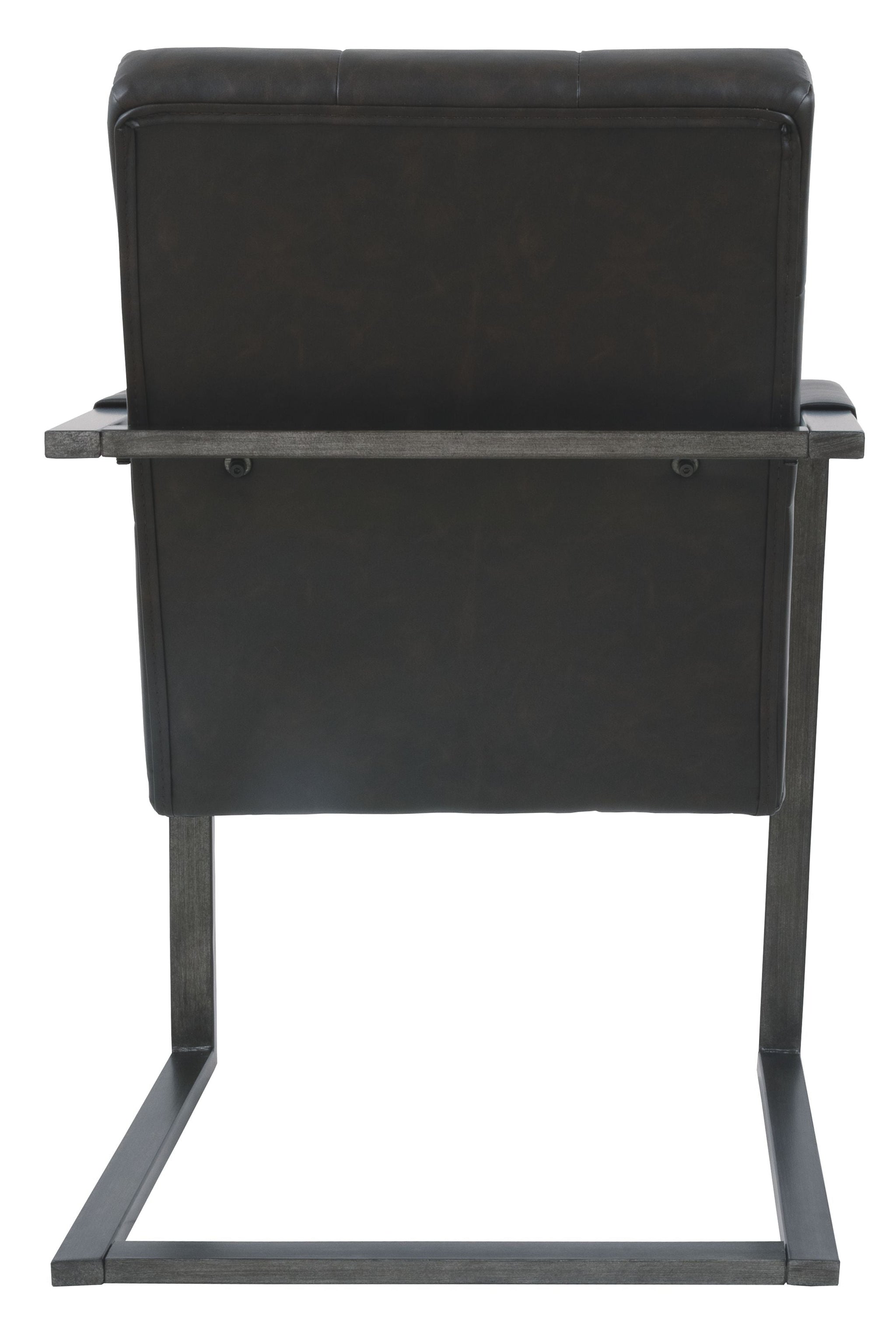 For fans of urban industrial design, this chair steals the show. Its metal C-frame in a blackened gunmetal finish is sleek, sculptural and ultra modern. Crafted for looks and comfort, the tufted box seat, wrapped in a “weathered” faux leather upholstery, is loaded with retro chic flair. Whether paired with Starmore’s home office desk or dining room table, it’s a feast for the eyes.