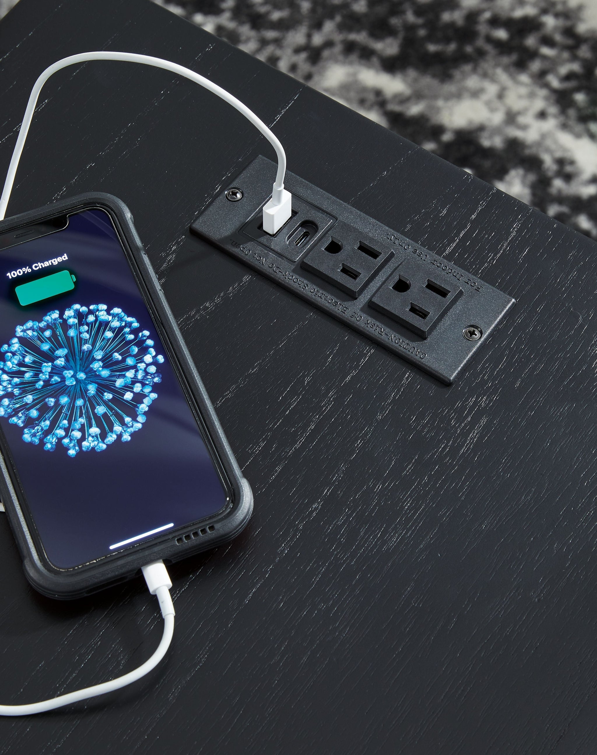 • 110V power supply with USB-A and USB-C charging ports