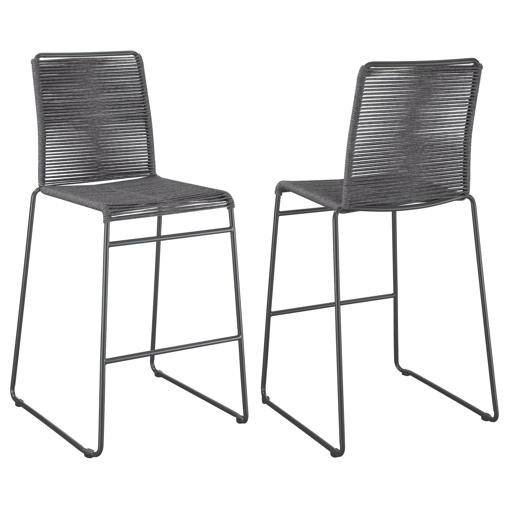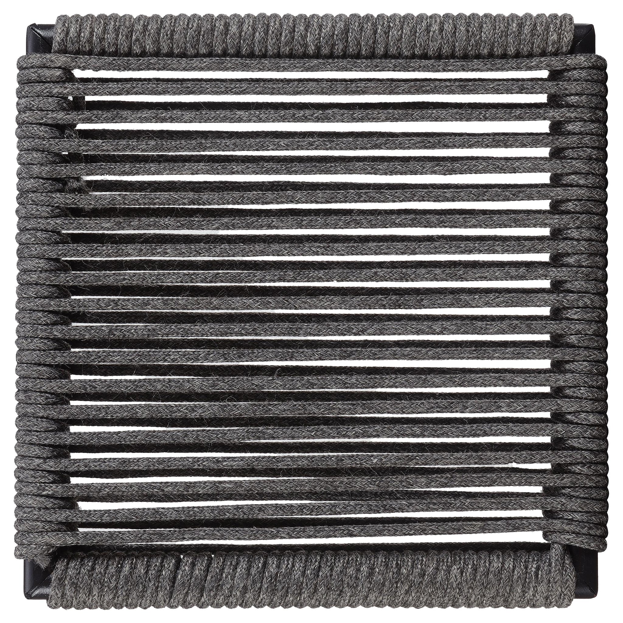 Create visual texture with this contemporary rope woven stool. A tall and slender metal frame in a gunmetal finish, wrapped in charcoal tone rope around the backrest and seat, offer a restful spot for family and guests at elevated dining areas. The metal frame offers an open, airy feel with its slim seat and angled legs, and extra support with a lower footrest. With a sled-style base, this stool slides gracefully up to a bar top or counter height tabletop for drinks, meals and more. Lastly, a dark hue throughout creates a dramatic, natural vibe for modern farmhouse and boho-inspired homes.