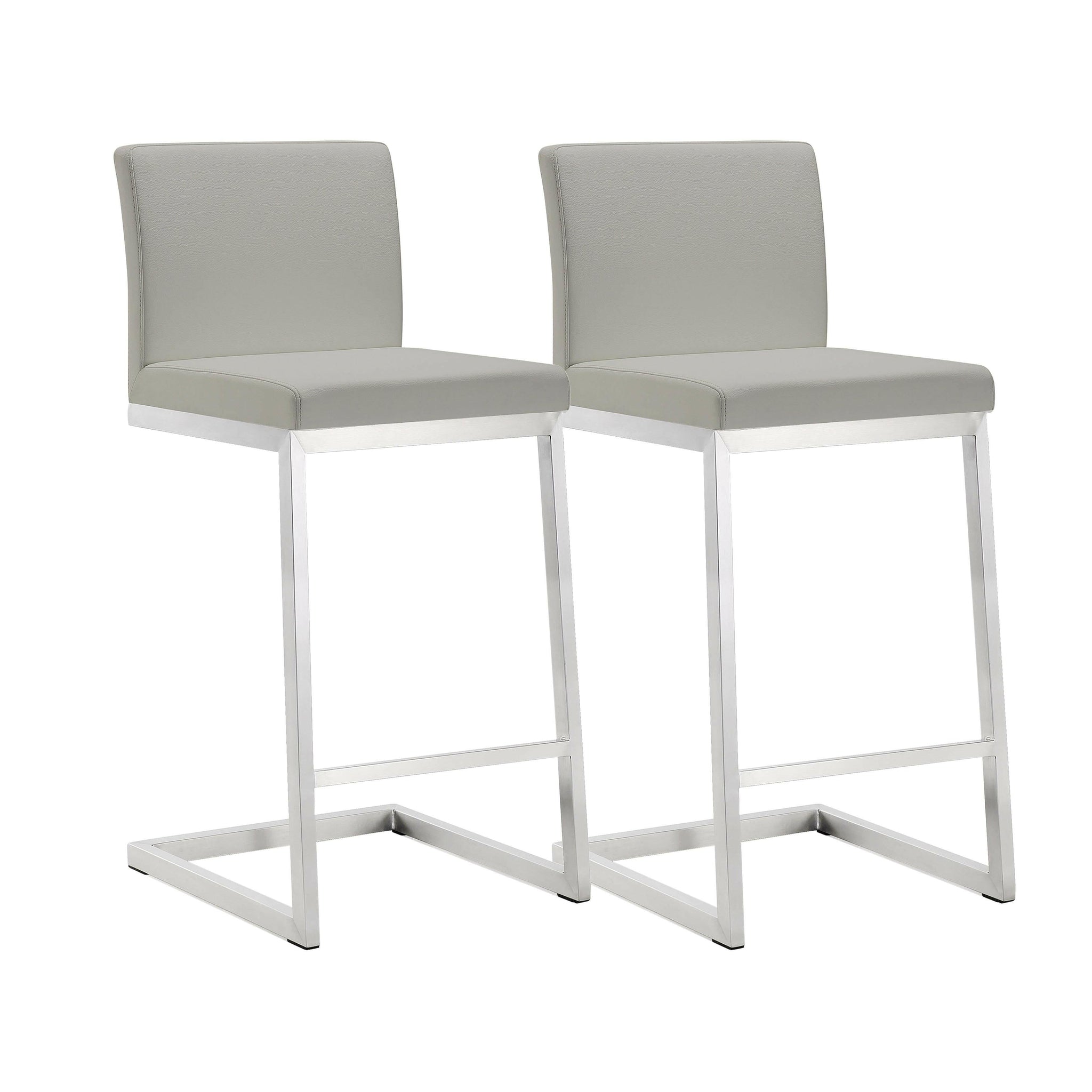 Parma Light Grey Performance Vegan Leather and Stainless Steel Counter Stool - Set of 2