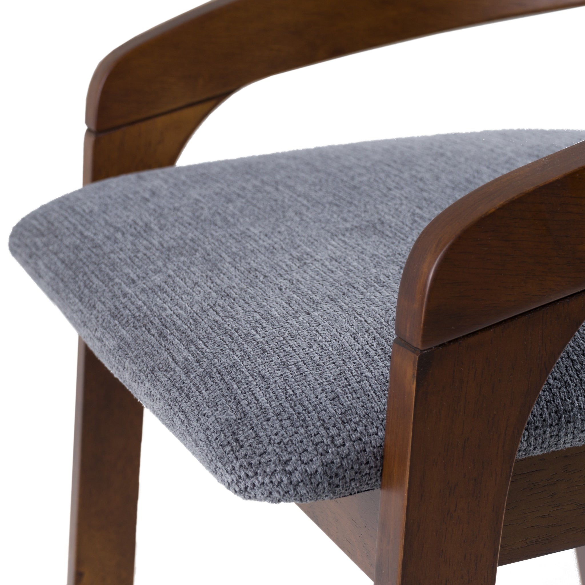 The Modrest Vougler - Modern Grey Fabric + Walnut Counter Chair (Set of 2) is a stylish and functional addition to any contemporary kitchen or bar area. This set includes two counter chairs, each upholstered in 100% polyester fabric in a sleek grey color, complemented by a walnut finish on the solid rubberwood and manufactured wood frame. Featuring a low backrest, four sturdy legs, and a footrest, these chairs offer both comfort and support with a weight capacity of 220 lbs. Easy to maintain, simply wipe clean with a dry cloth; assembly is required.