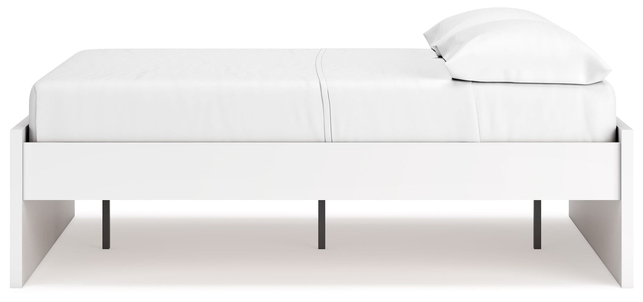 Includes panels, rails and roll slatsMade with engineered wood (MDF/particleboard/plywood) and decorative laminate for the right balance of affordability and durabilitySolid white finishDecorative laminate replicates natural or man-made material surfaces with consistent color, pattern and textureBed does not require additional foundation/box spring accommodates most zero clearance adjustable basesMattress available, sold separatelyAssembly required