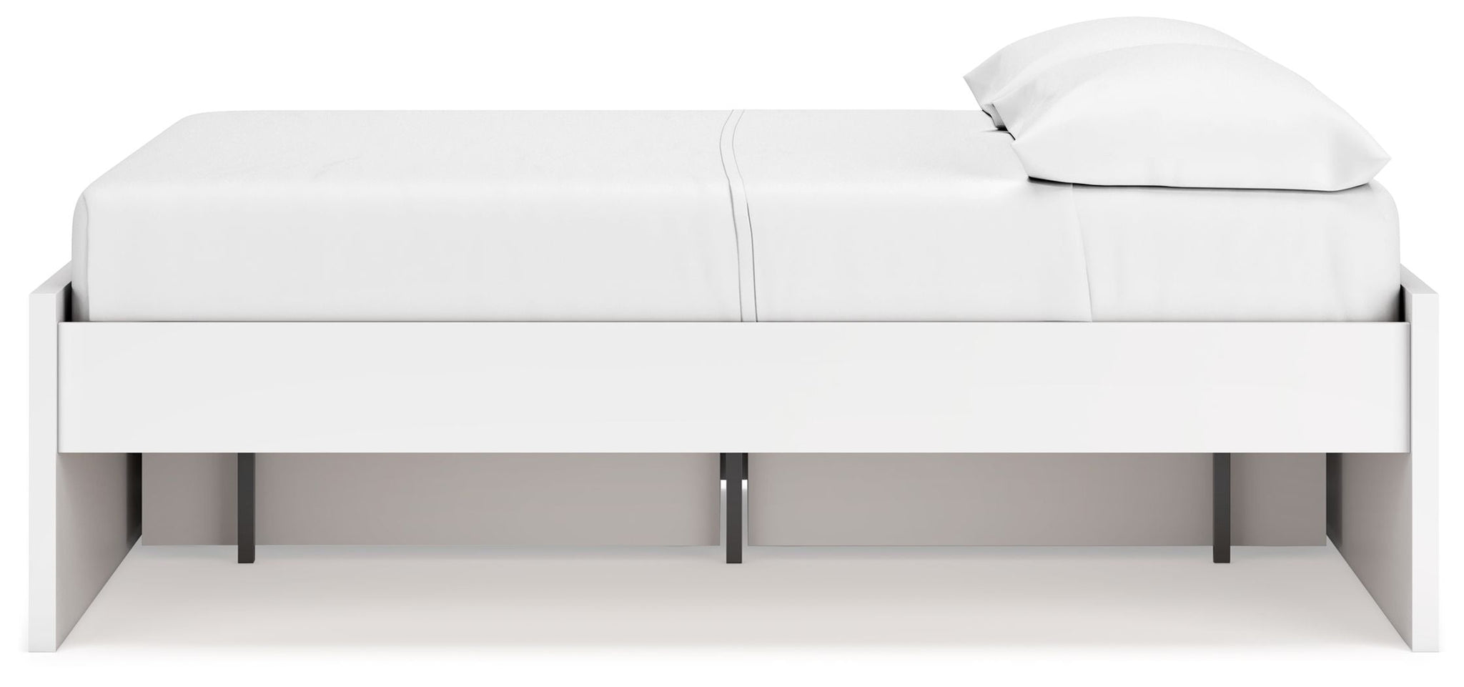 Includes panels, rails, roll slats and 2 side storage drawersMade with engineered wood (MDF/particleboard/plywood) and decorative laminate for the right balance of affordability and durabilitySolid white finishDecorative laminate replicates natural or man-made material surfaces with consistent color, pattern and texture2 smooth-gliding storage drawers with ball-bearing side glides vinyl-wrapped sides and back for durabilityBed does not require additional foundation/box spring accommodates most zero clearance adjustable bases with the addition of a bunkie boardMattress available, sold separatelyAssembly required