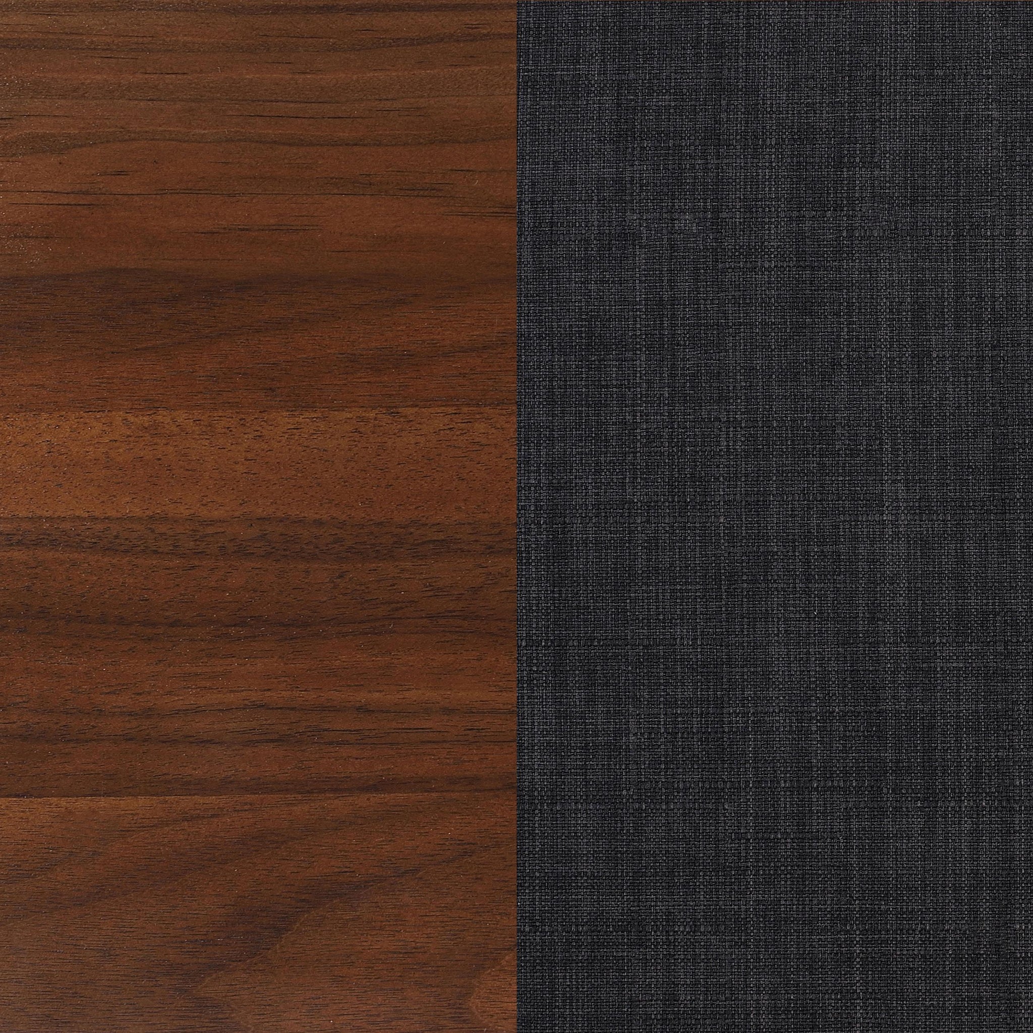 Dark grey fabric upholstered headboard with thick padding and square tufting
