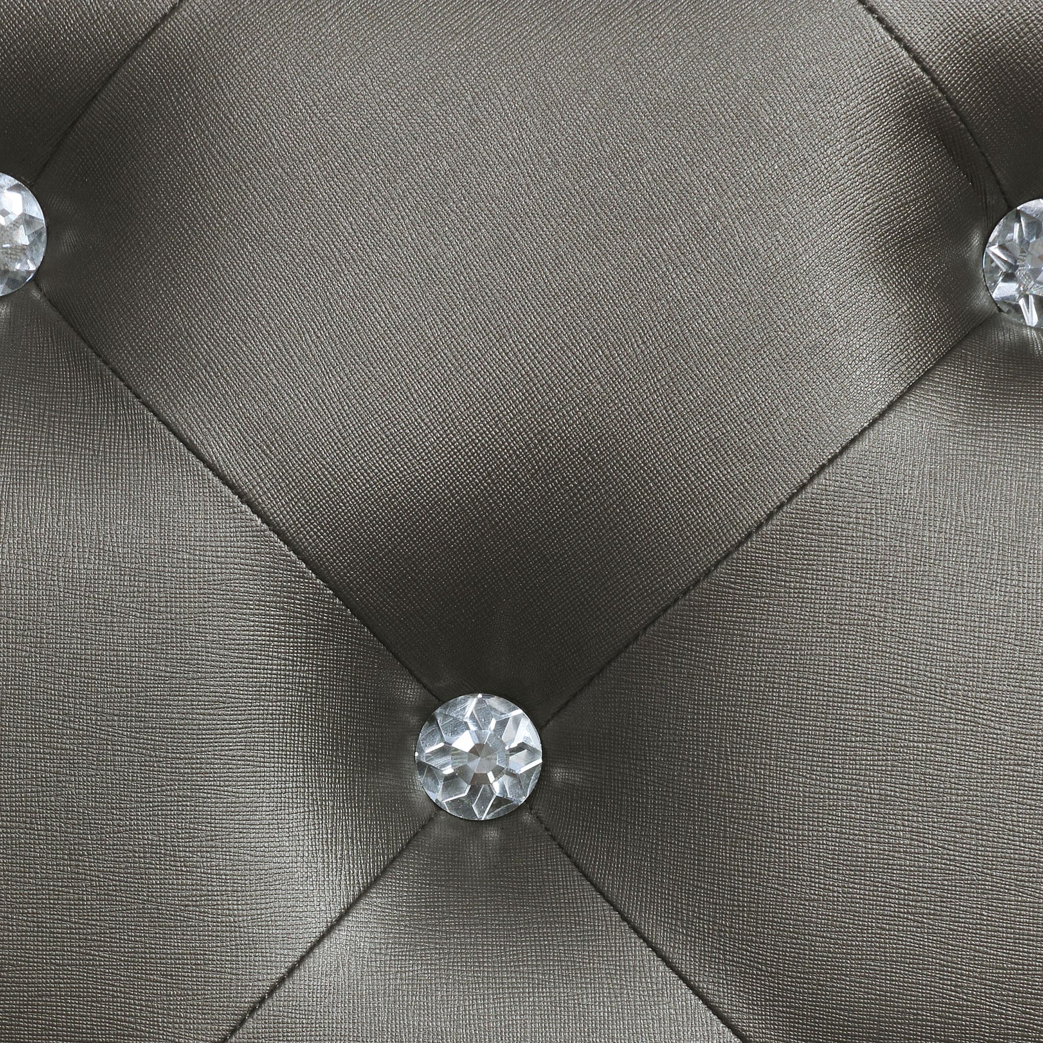 Headboard features crystal-tufted metallic leatherette panel for a glam effect