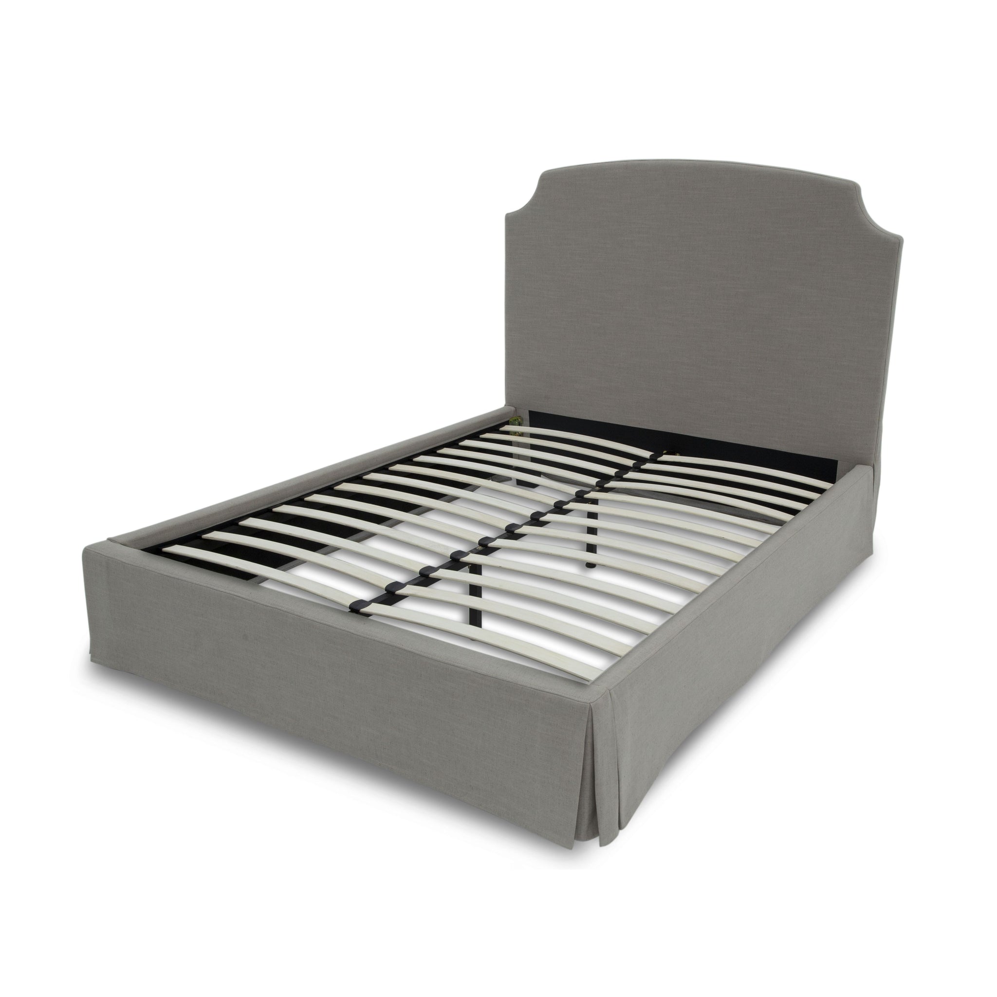 Designed with clean lines in an array of colors, our Juliette upholstered bed collection brings relaxed luxury to your bedroom. Made with solid wood framing, layered foam and soft linen-blend fabric, this group creates a no-maintenance slipcover look with skirted bases and inverted corner pleats. Available in panel, wingback, camelback and clipped corner configurations.