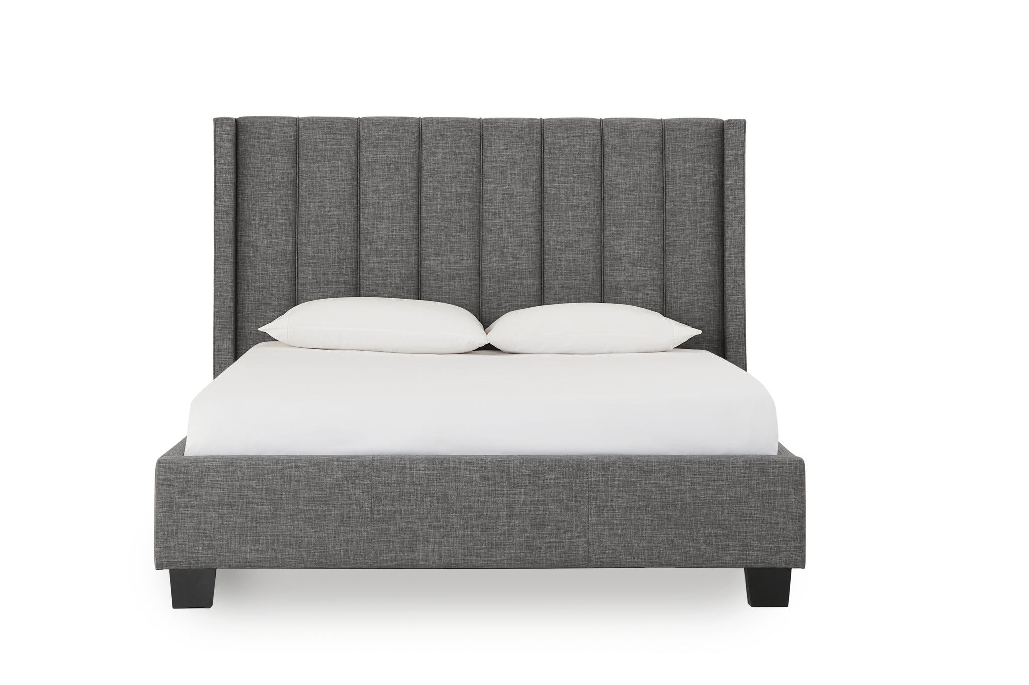 Palermo Upholstered Wingback Platform Bed in Dark Stone