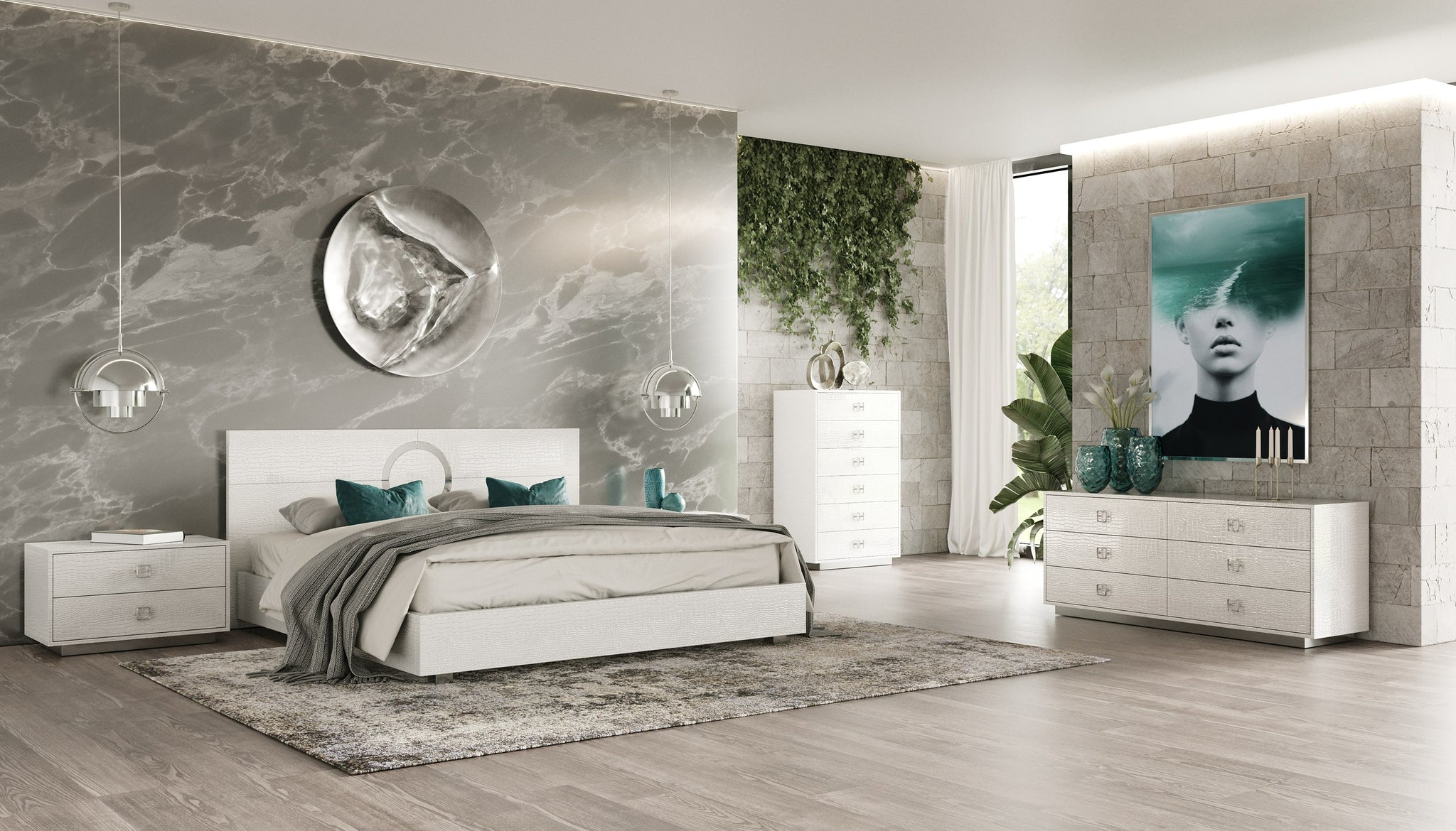The stark white high gloss of the Victoria Dresser is striking and impressive. The textured crocodile style finish is unique and stylish. Paired with the silver drawer pulls and base, this is a truly elegant piece. Six soft closing drawers are functional and beautiful. Pair with the Victoria Nightstands and Chest for a complete set.
