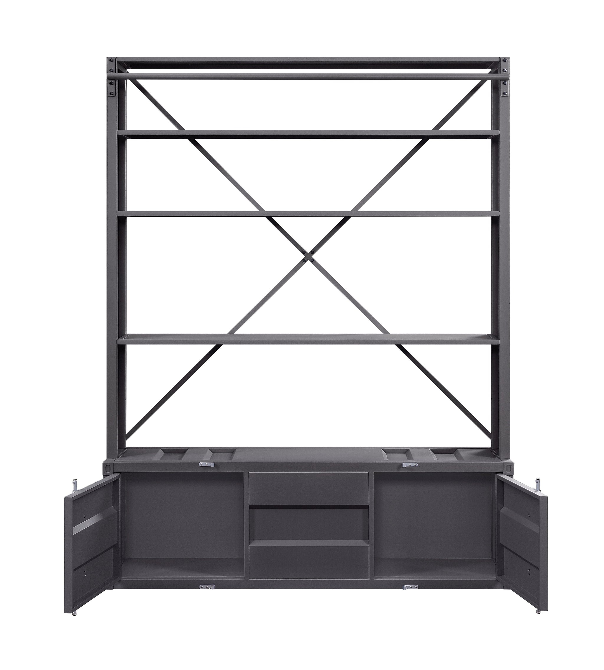 • Storage: Top] 4 Open Compartments (3 Removable Metal Shelves), Base] 2 Doors (NO Shelves Inside)