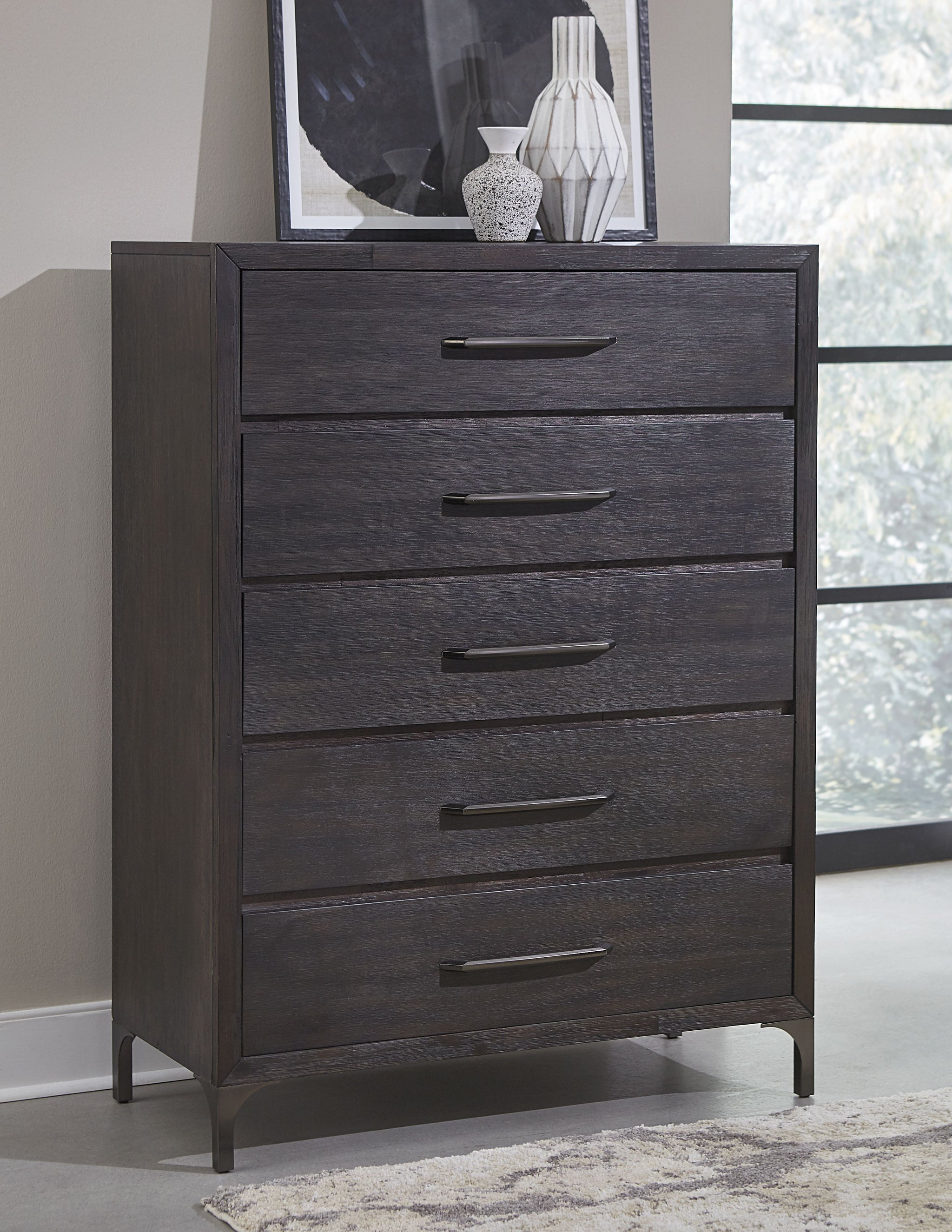 Lucerne Five-Drawer Metal Leg Chest in Vintage Coffee (2024)