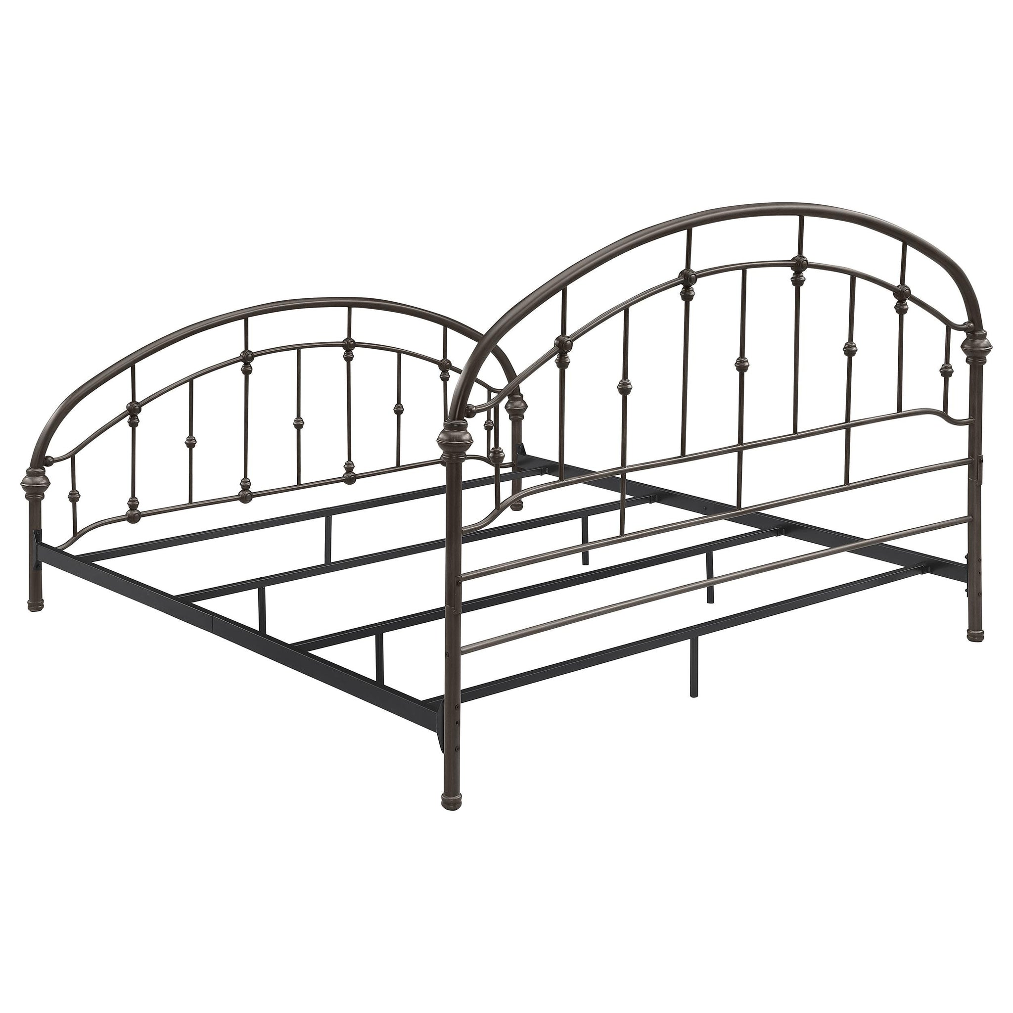 Add timeless appeal to your bedroom with this vintage-inspired metal bed frame, finished in a rich dark bronze for added sophistication. Featuring arched headboard and footboard designs with intricate detailing, this frame is crafted from heavy gauge metal for durability. Secure metal slats provide stable support for a box spring and mattress, combining elegance with functionality. Perfect for traditional or modern bedroom styles.