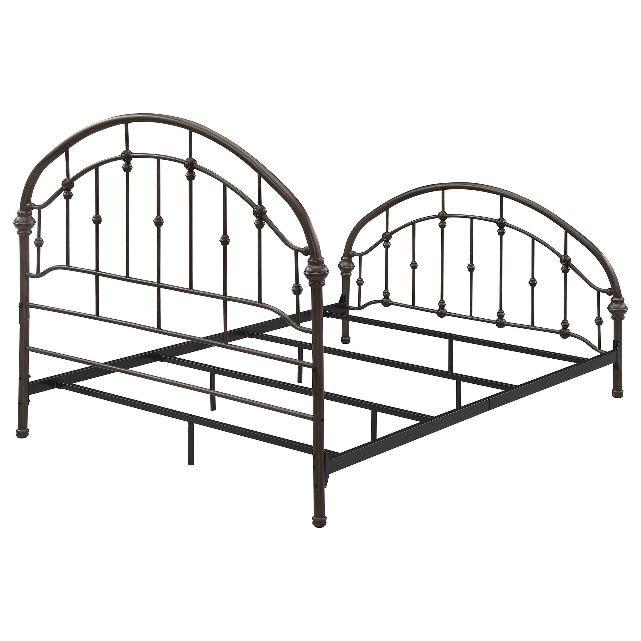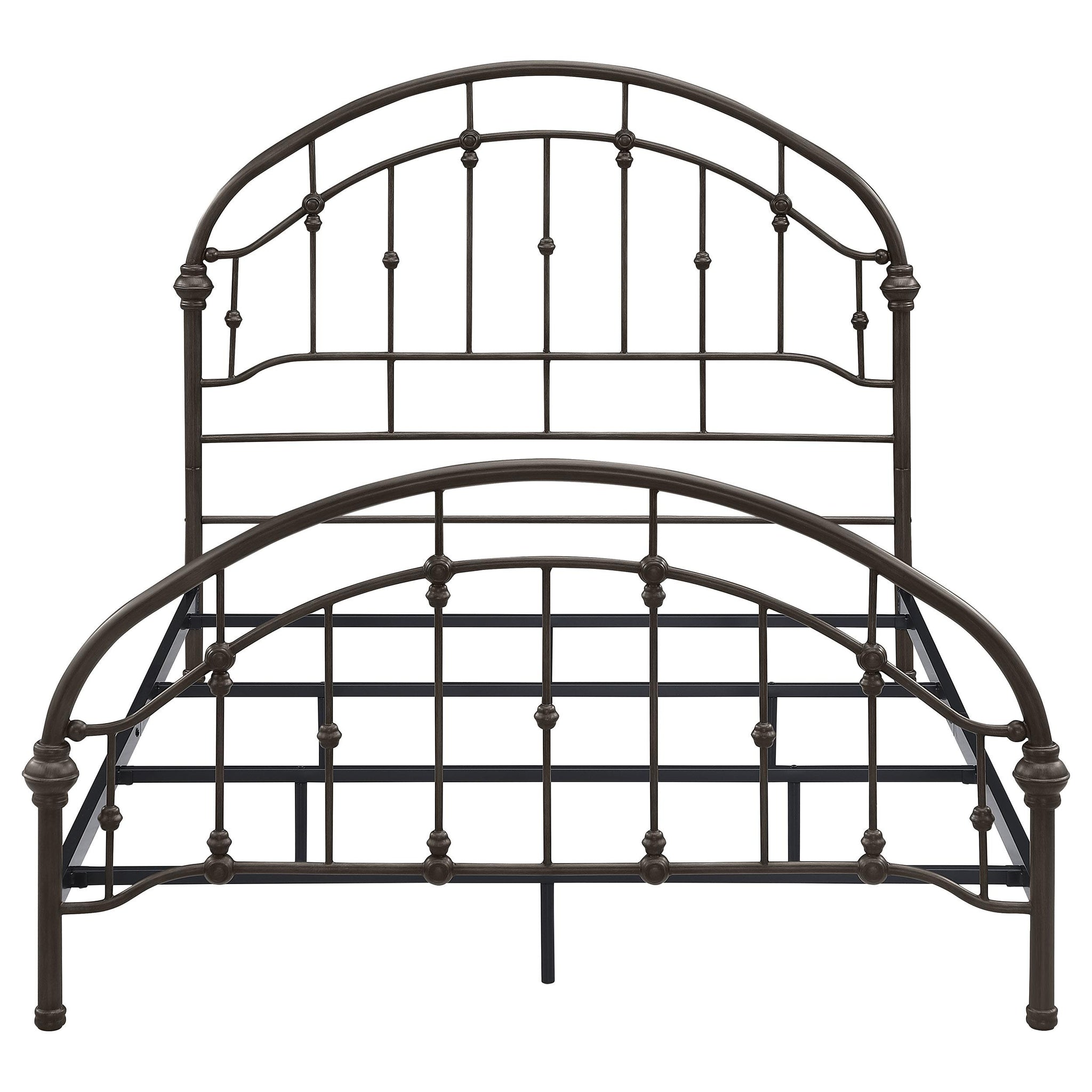 Add timeless appeal to your bedroom with this vintage-inspired metal bed frame, finished in a rich dark bronze for added sophistication. Featuring arched headboard and footboard designs with intricate detailing, this frame is crafted from heavy gauge metal for durability. Secure metal slats provide stable support for a box spring and mattress, combining elegance with functionality. Perfect for traditional or modern bedroom styles.