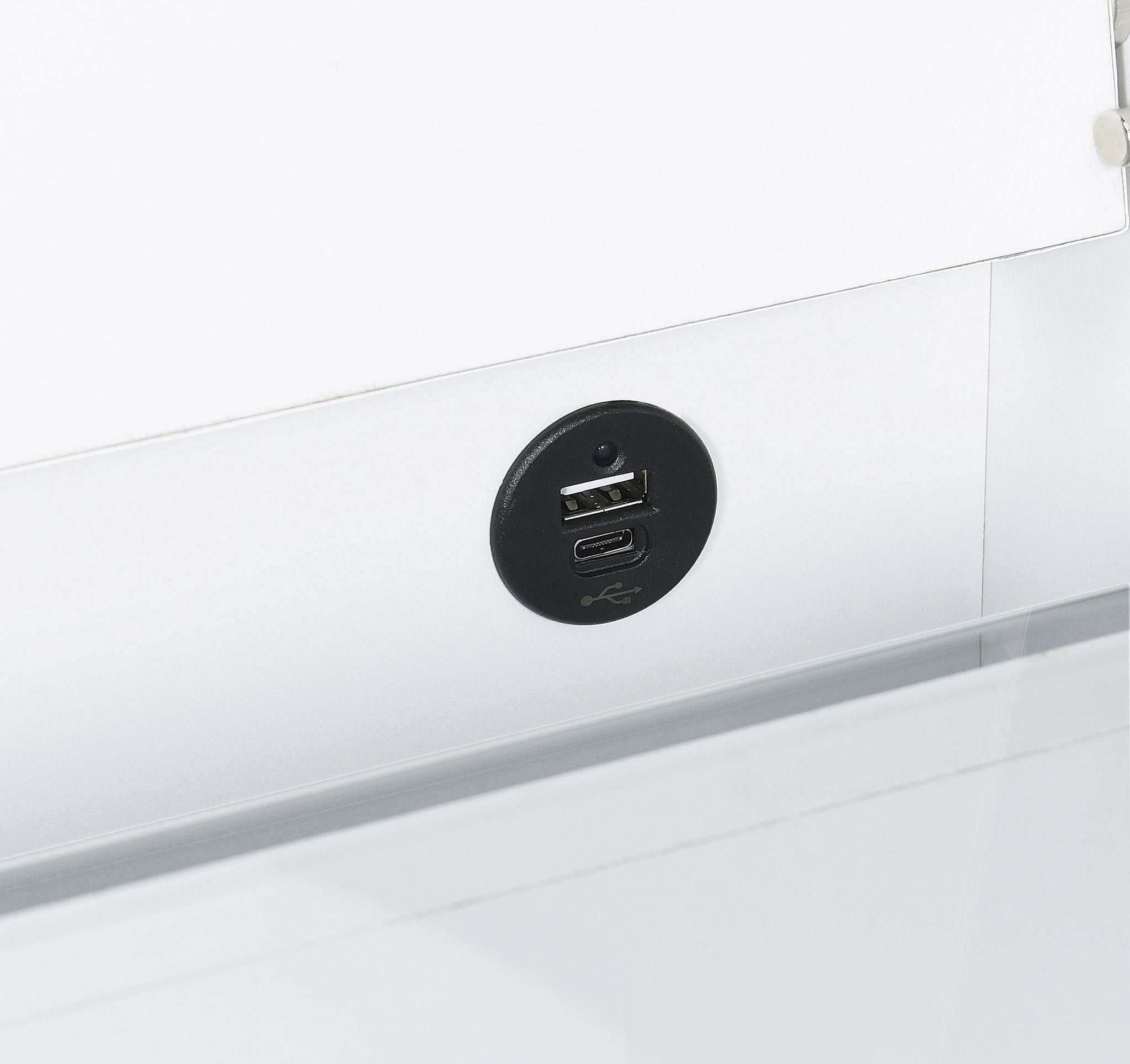 Built-in dual USB outlet with Type A and Type C ports for convenient device charging