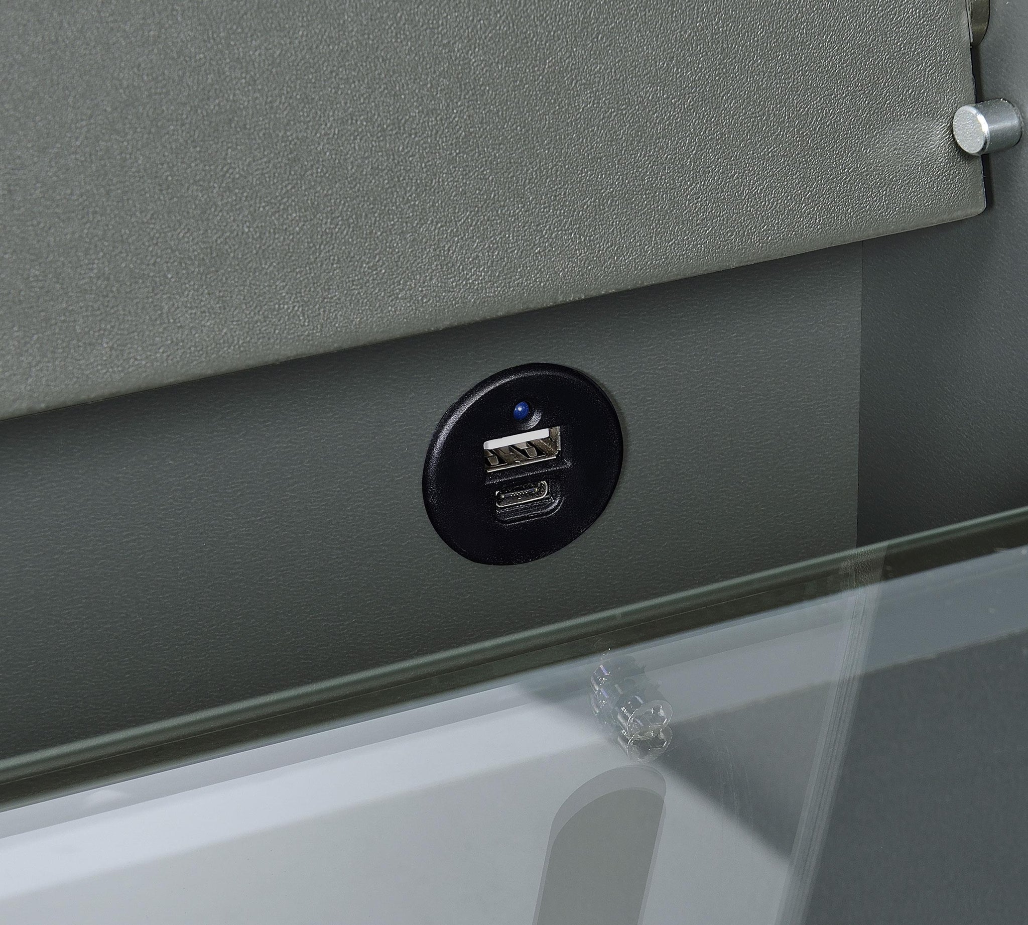 • Built-in dual USB outlet with Type A and Type C ports for convenient device charging