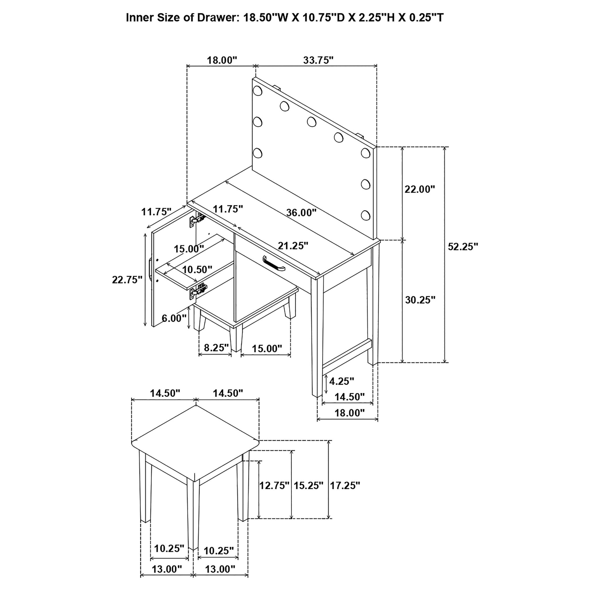 Coaster Furniture 931149 Elijah Vanity Set with Lighting & Stool White and Dark Grey