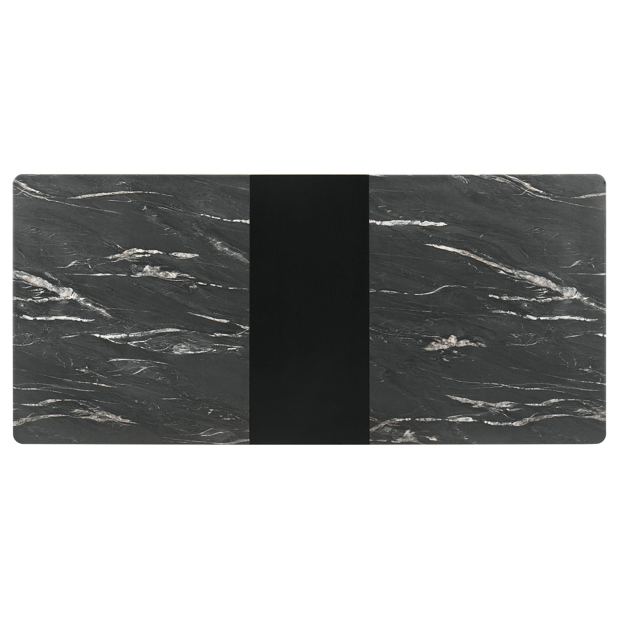 Envision your gatherings transformed with this exquisite dining set, where the sleek lines of modern design meet the timeless allure of faux marble. The tables luxurious black marble-esque top is a symphony of style, supported by fin-style legs that ground it with a touch of sophistication. As your ensemble grows with the seamless self-storing extension, the dining tableau adapts, offering a spacious stage for both feasts and intimate conversations. Accompanying the table, the Danish Y-shaped wishbone chairs, dressed in black and beige, whisper of coastal breezes and relaxed elegance, their form both a nod to tradition and a statement of contemporary grace. This dining set doesnt just host meals; it curates experiences.
