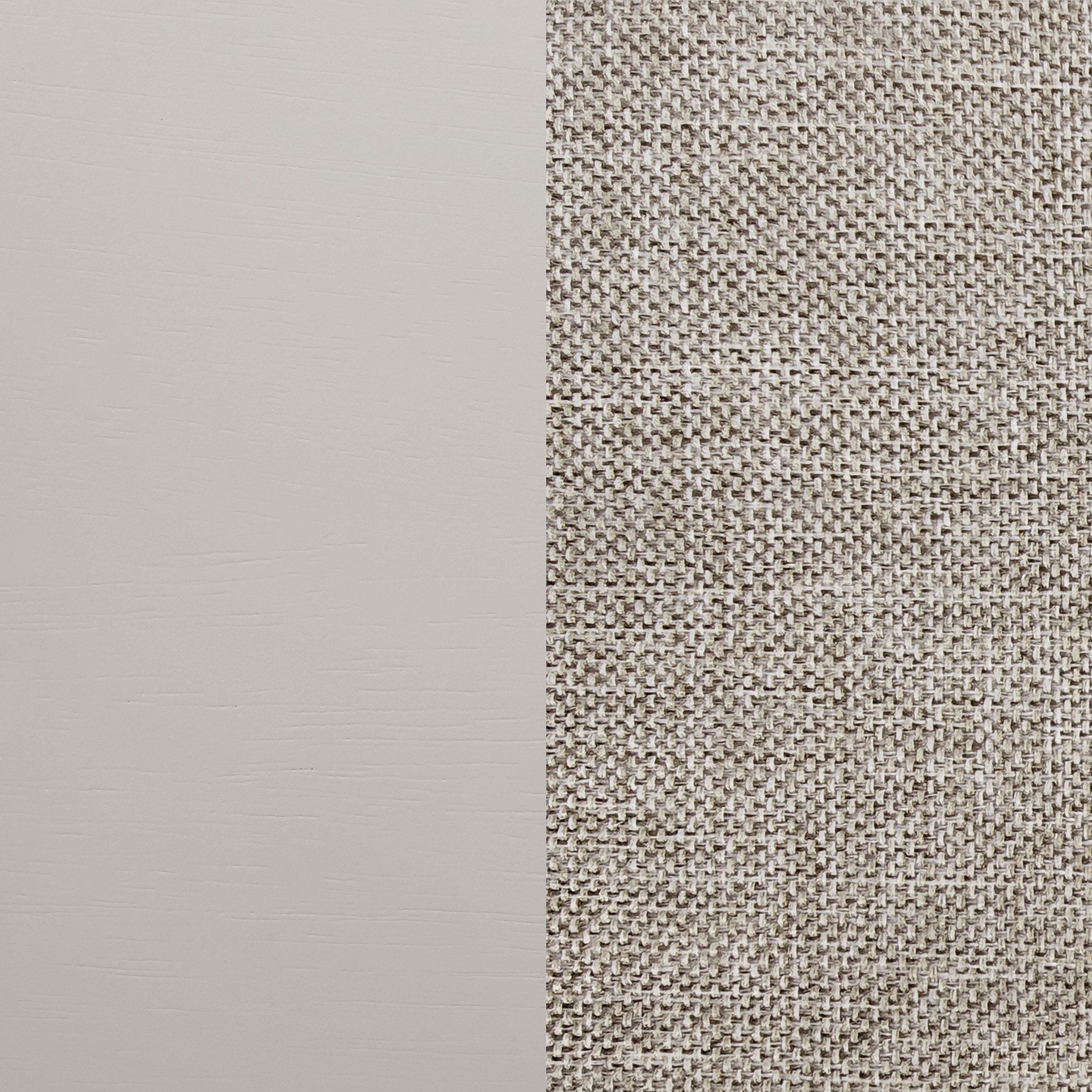• Light brown upholstery on a padded seat adds warmth and contrast to a cool white frame finish
