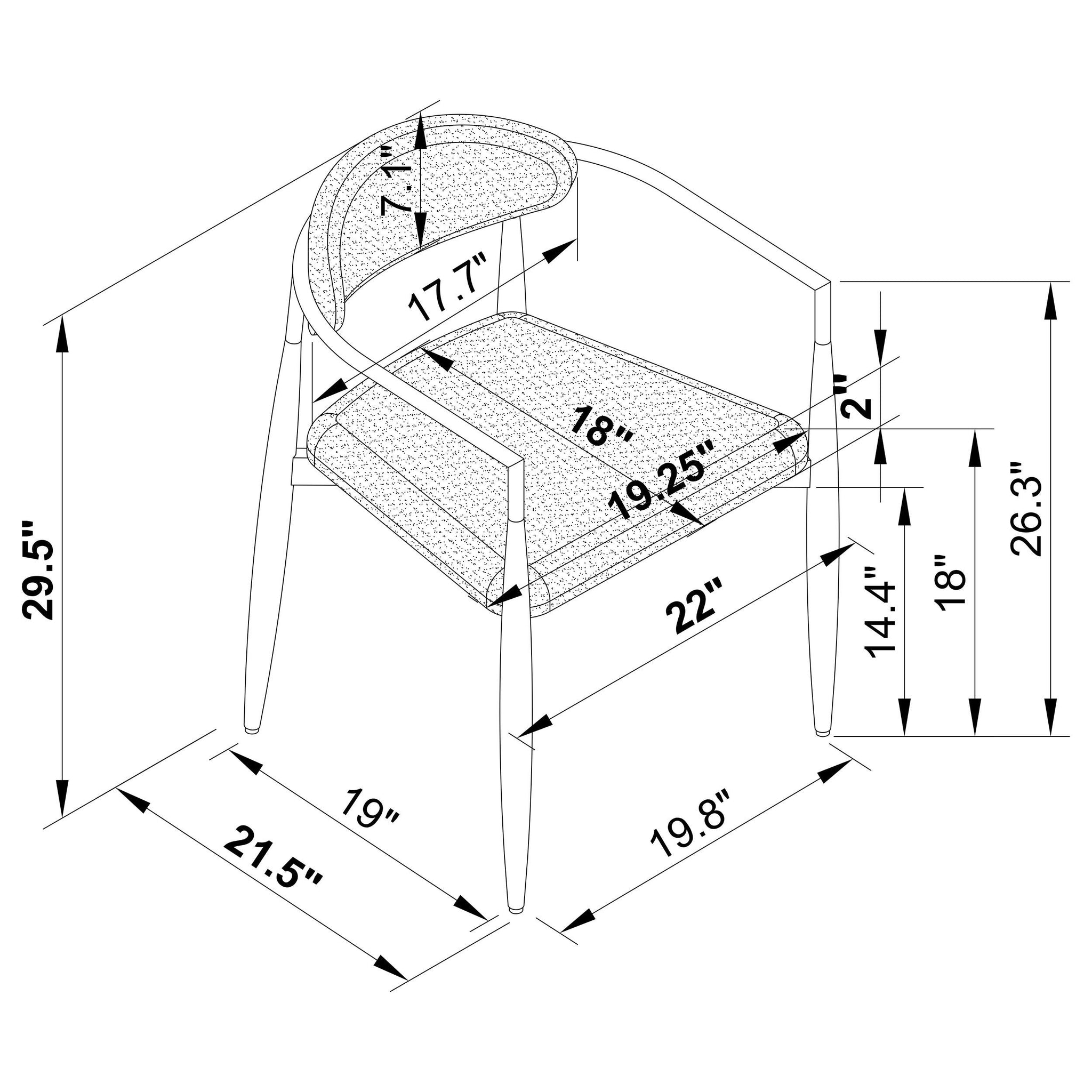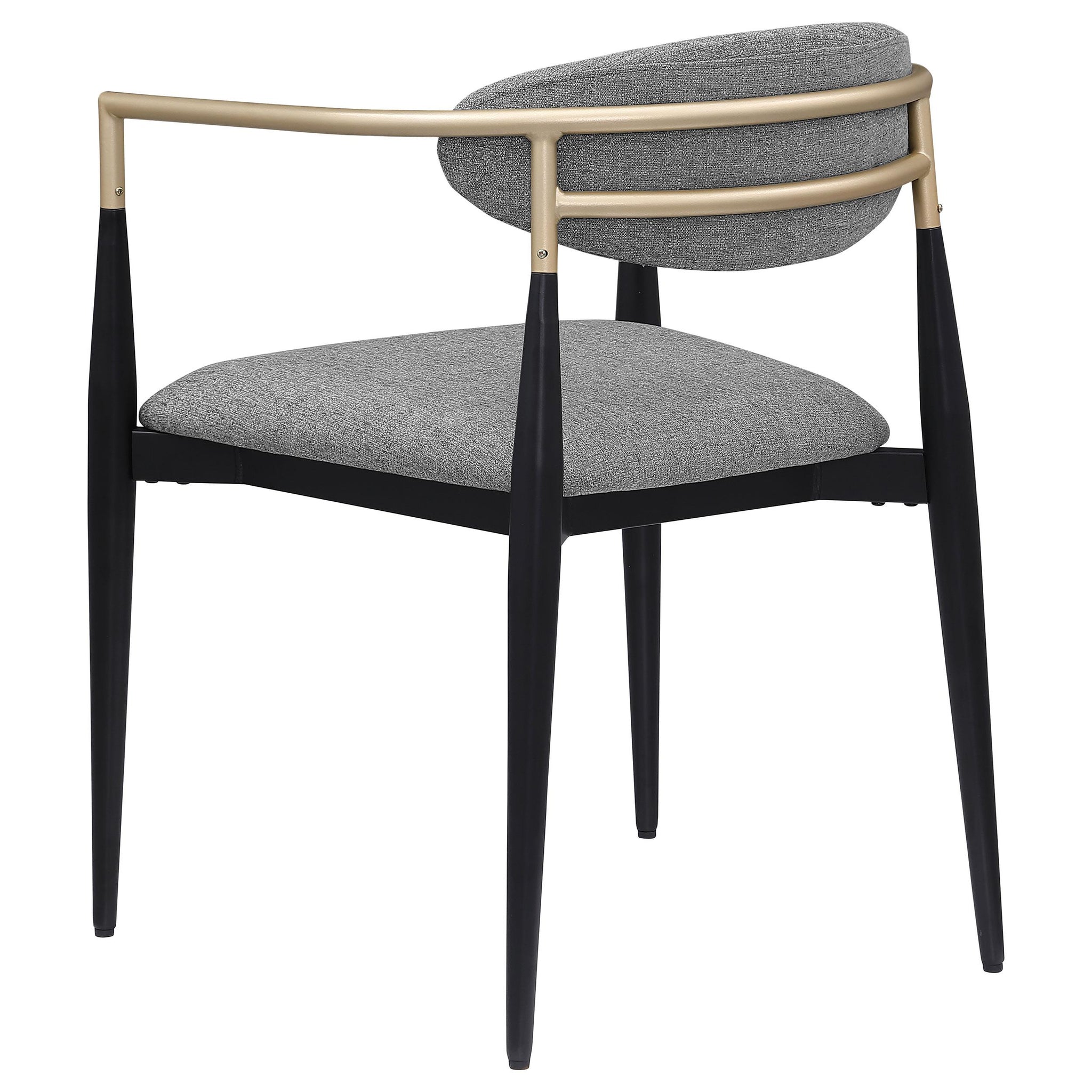 Glam touches create a modern aesthetic for a set of two modern dining armchairs