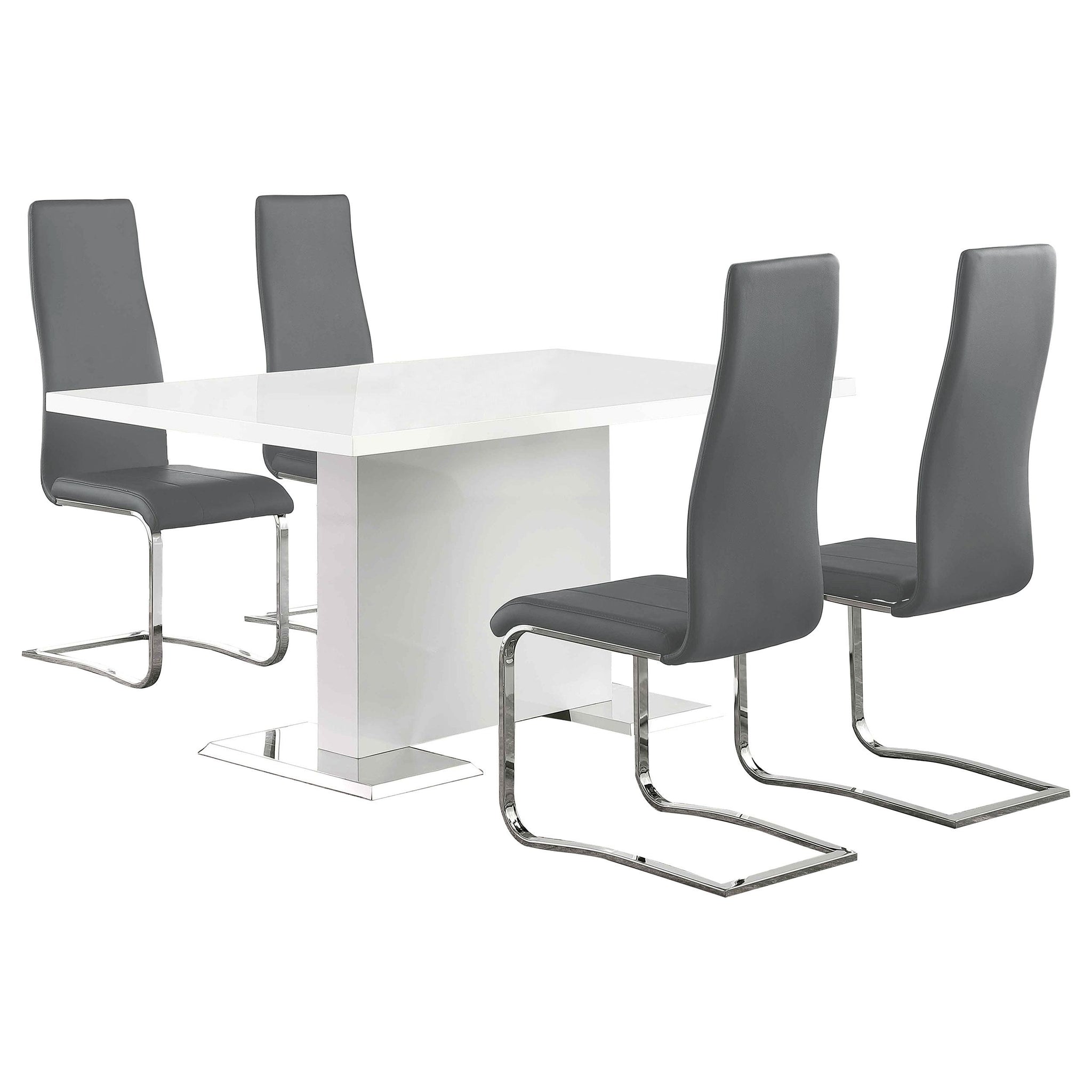 Transform your dining space with the sleek Anges 5-piece dining set, featuring a glossy white table and chrome base