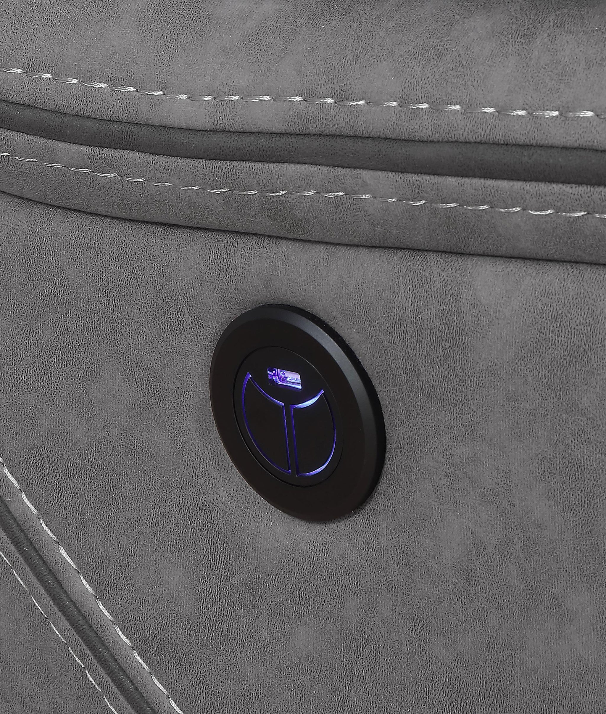 Four-piece power reclining sectional upholstered in grey performance faux suede