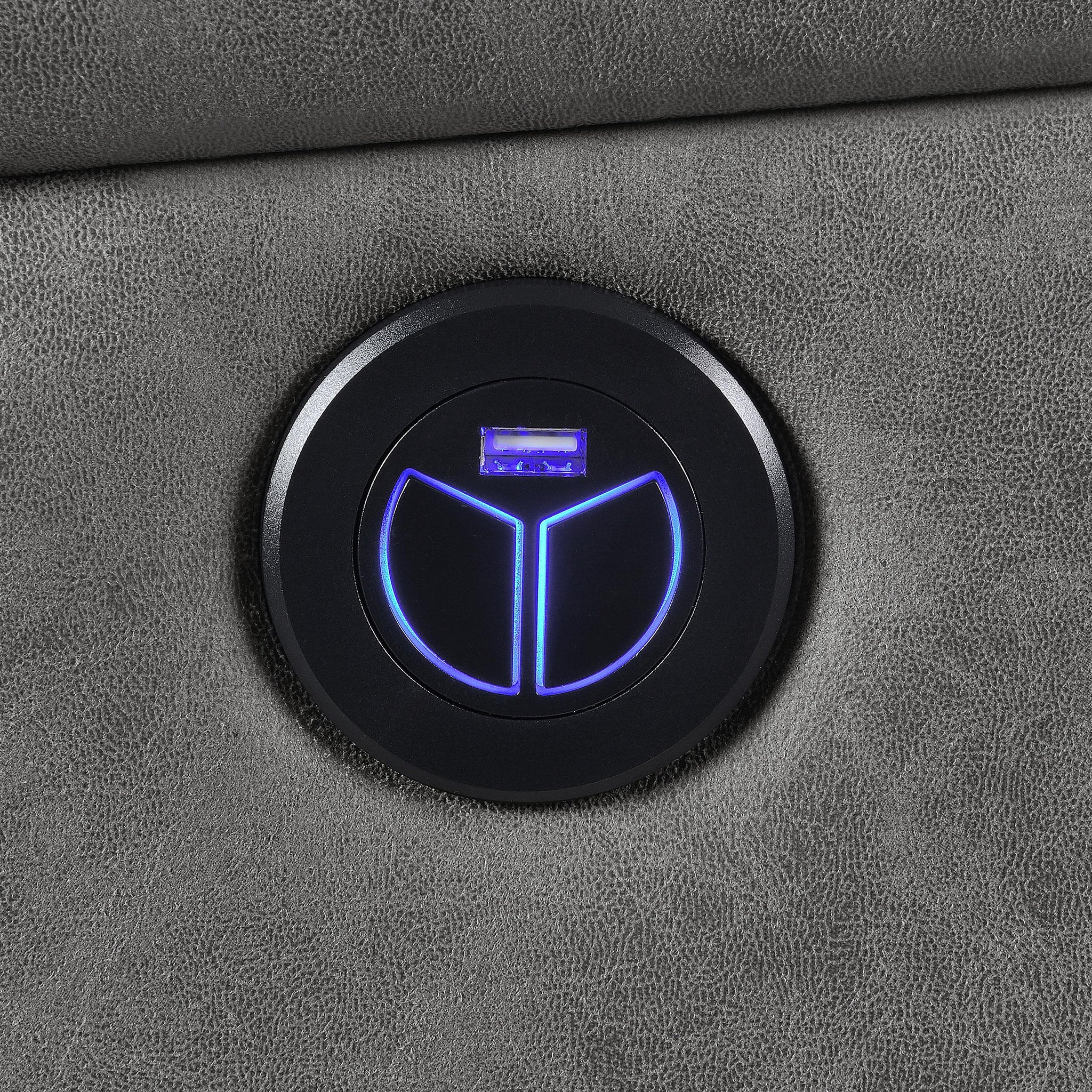 Console includes soft-close lift-top storage and two stainless steel cup holders