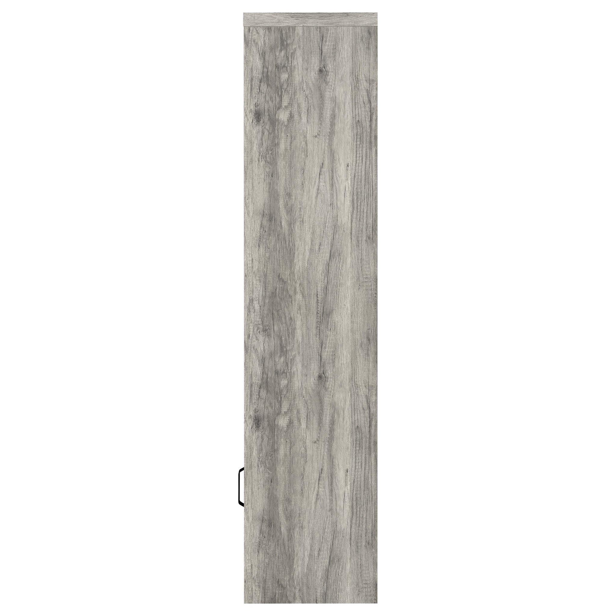Create an entertainment mecca with this three-piece media center featuring a central TV stand and two media towers with gray driftwood finish laminate surfaces for durability and scratch/dent resistance