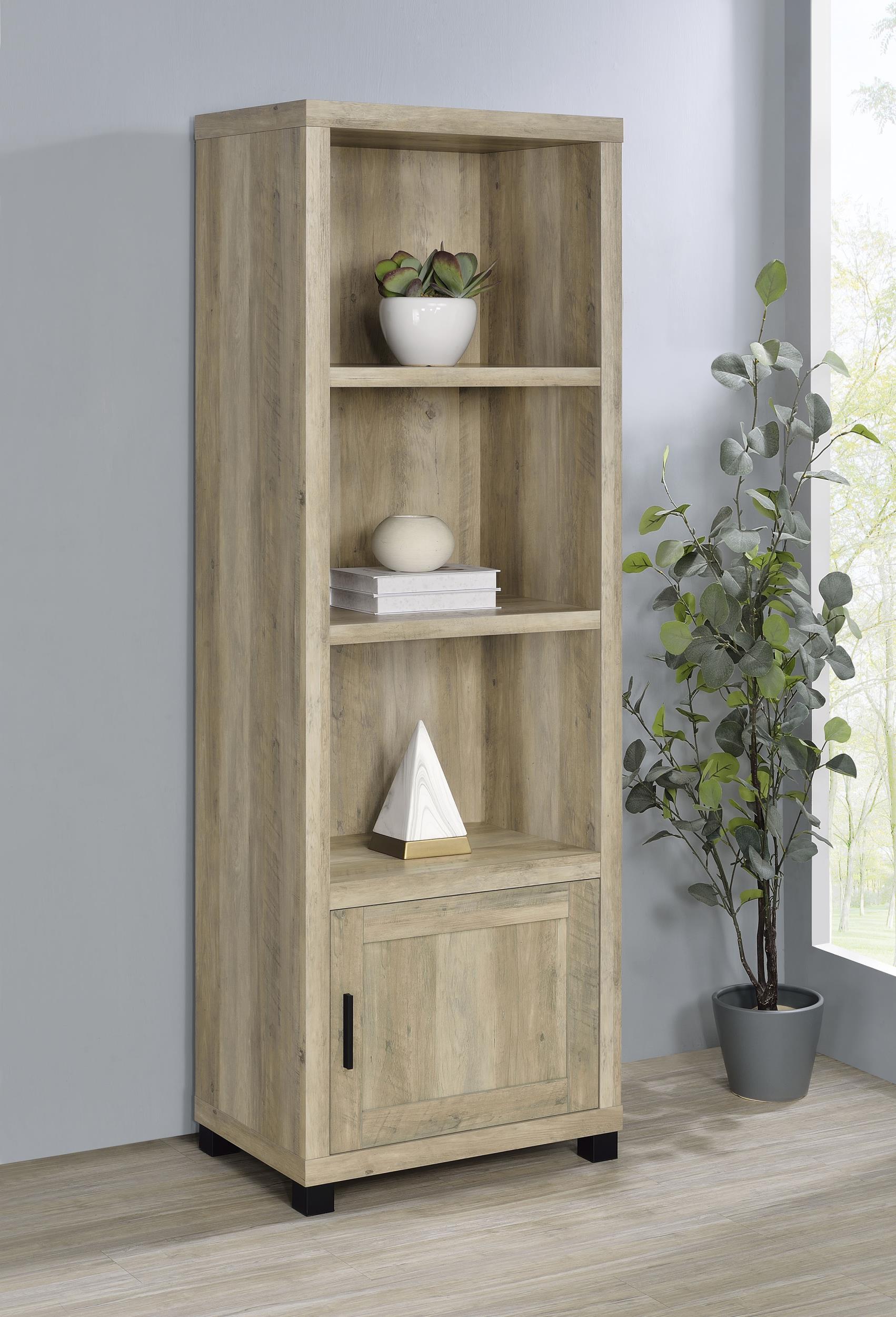 Conveniently designed in a vertical orientation, the Sachin media tower saves precious space in your compact or large living space. Make the most of a rustic look with a tower built of wood products with engineered veneer. Earth-inspired finishes mesh with most surroundings. Four storage compartments and three fixed shelves behind one side-open door invite media, books, or electronic components. Make this media tower an integral part of your updated entertainment plan.
