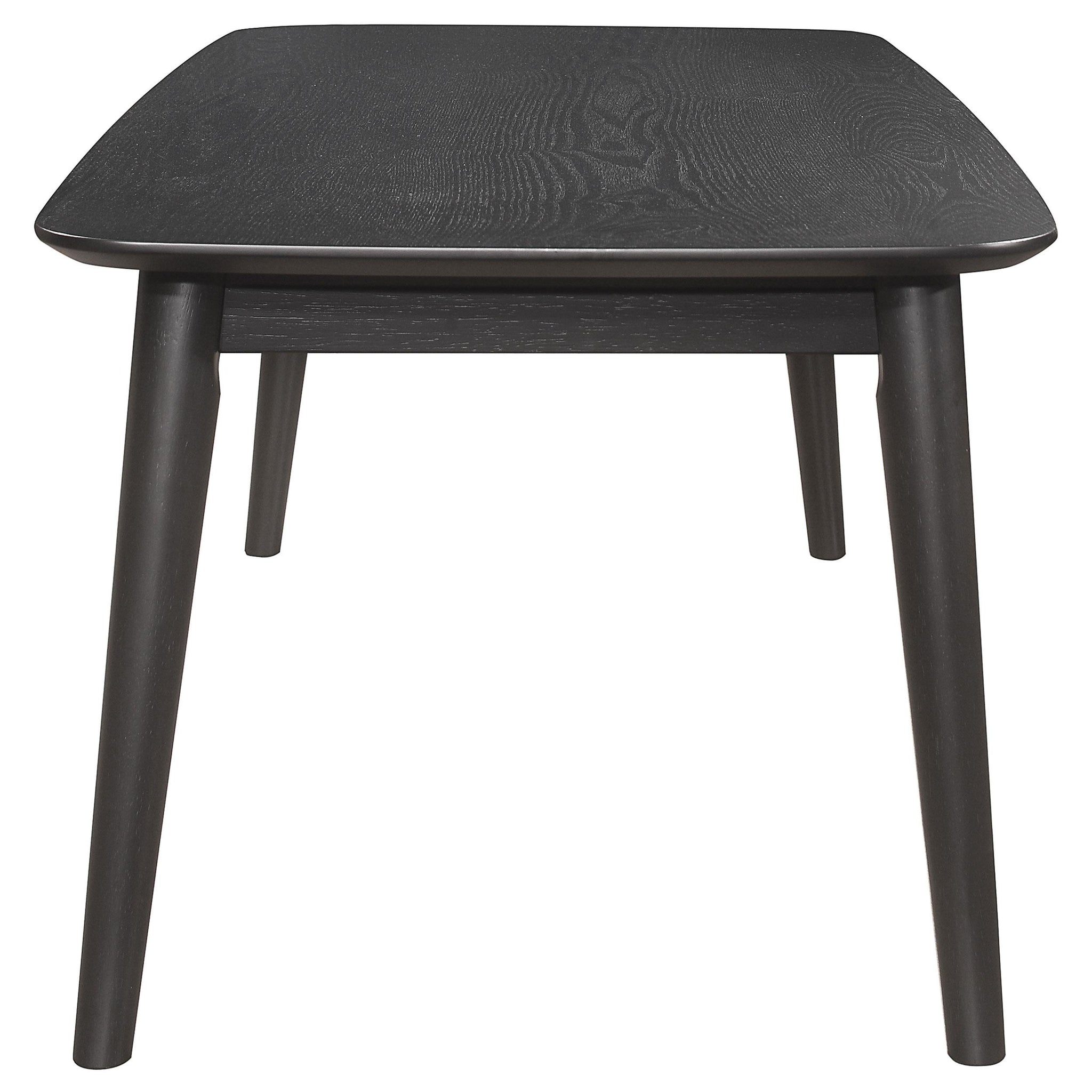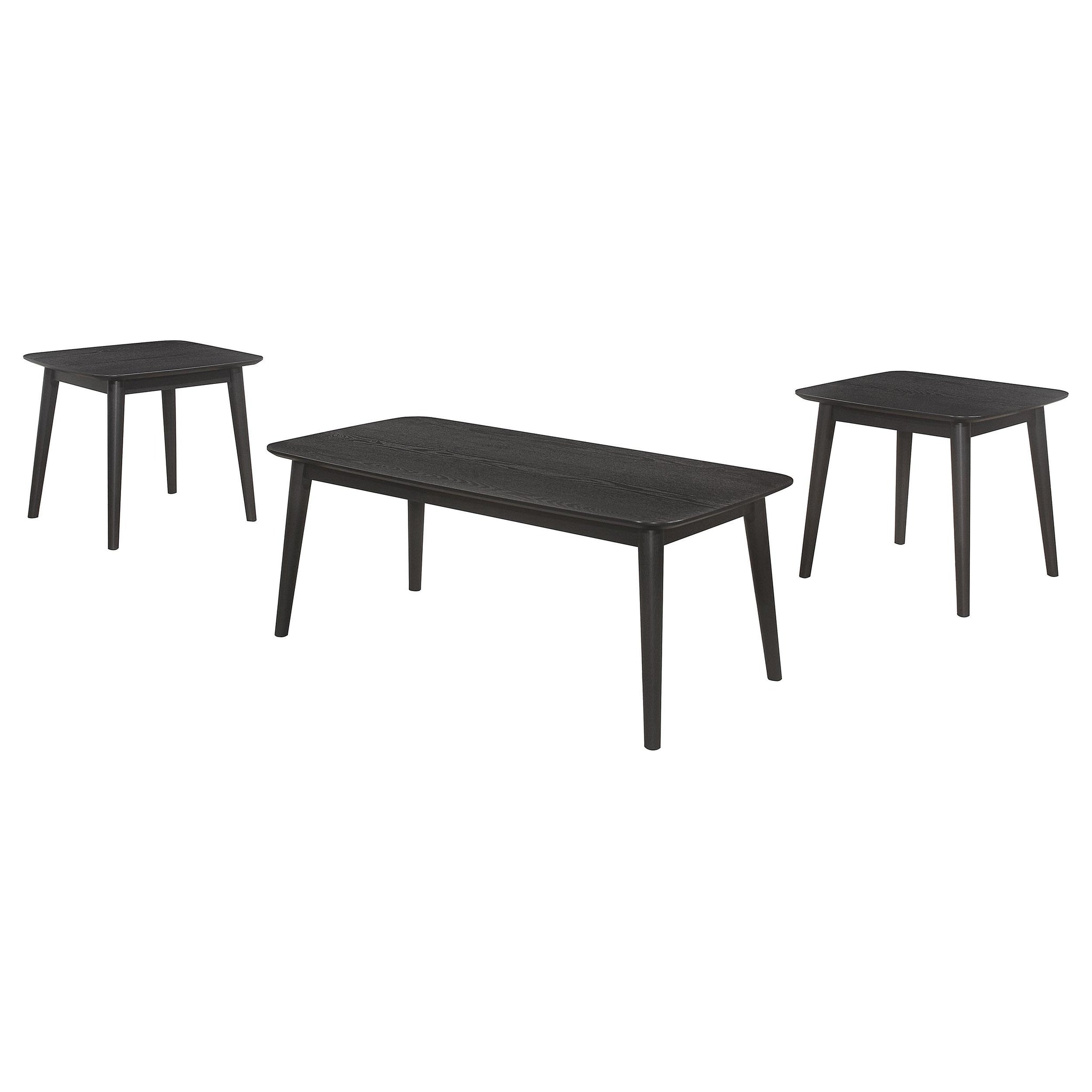 Amid the modern milieu, a three-piece coffee occasional table set stands as a beacon of mid-century inspiration. The coffee table, along with its twin end tables, boasts a black finish so deep it seems to hold secrets within its ash veneer wood grain. Elegant angles converge in the 45-degree chamfered edge profile, softening the silhouette while maintaining a crisp, architectural line. This ensemble, crafted from a harmonious blend of solid and engineered wood, is a tribute to both form and function, a striking centerpiece to any gathering space where stories are shared over cups of coffee.
