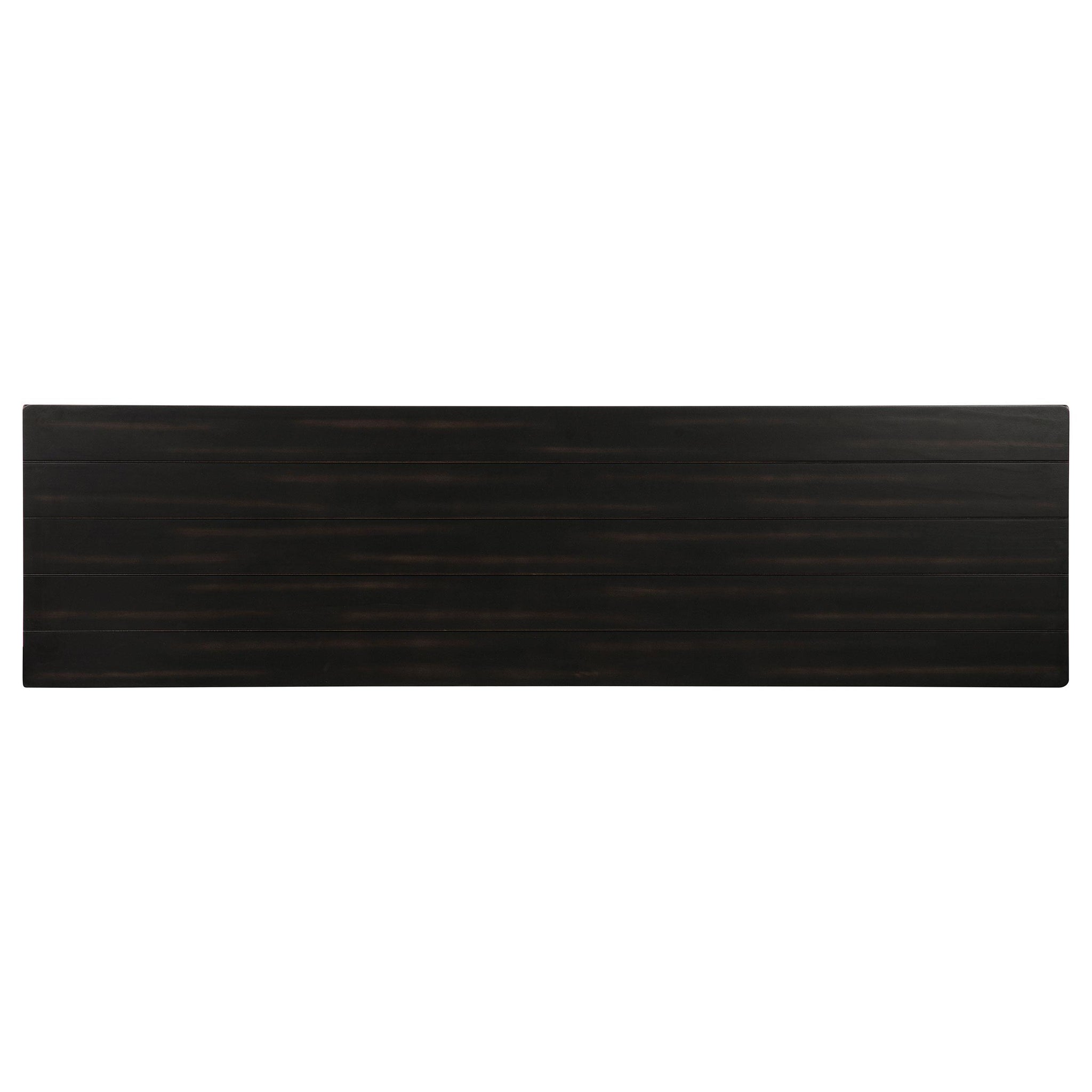 • Roughhewn wood markings add artisan character to a modern farmhouse TV stand