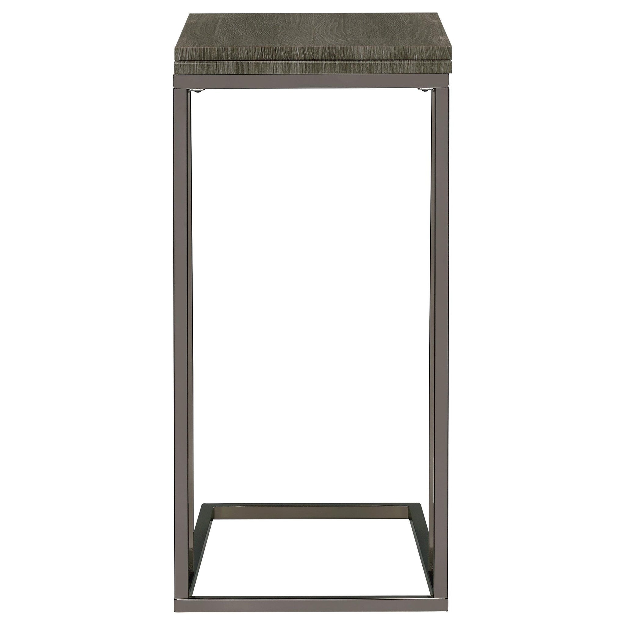This versatile C-table combines functionality and sleek design, perfect for modern living spaces. Crafted with an engineered wood top featuring a scratch-resistant laminate veneer, it offers durability and style. The top folds out, providing expanded surface area when needed. Supported by a sturdy metal base with an electroplated finish, it blends practicality with elegance. Its slim profile allows it to slide easily under sofas or chairs, making it an ideal space-saving solution.