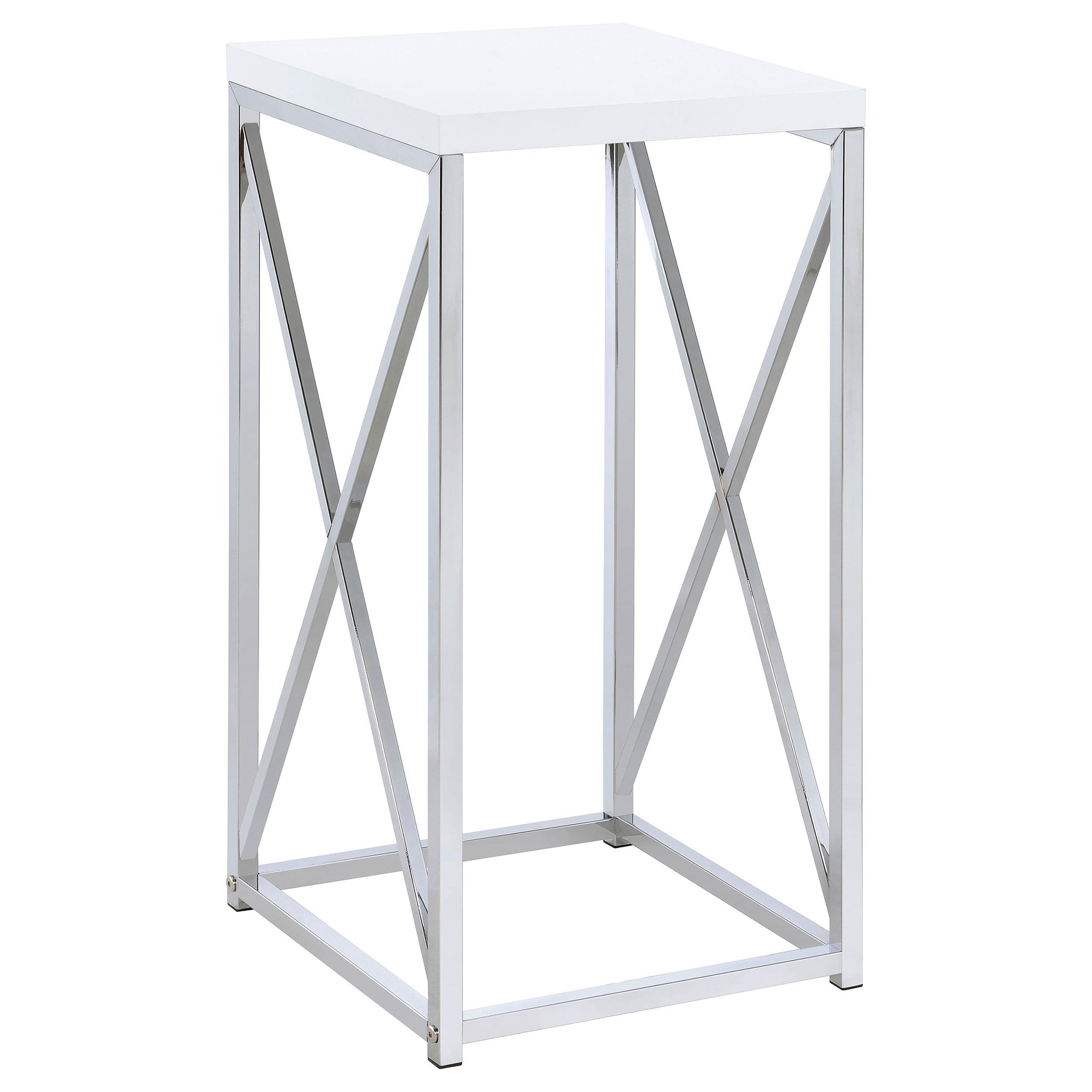 Coaster Furniture 930014 Edmund Square Accent Side Table White High Gloss and Chrome