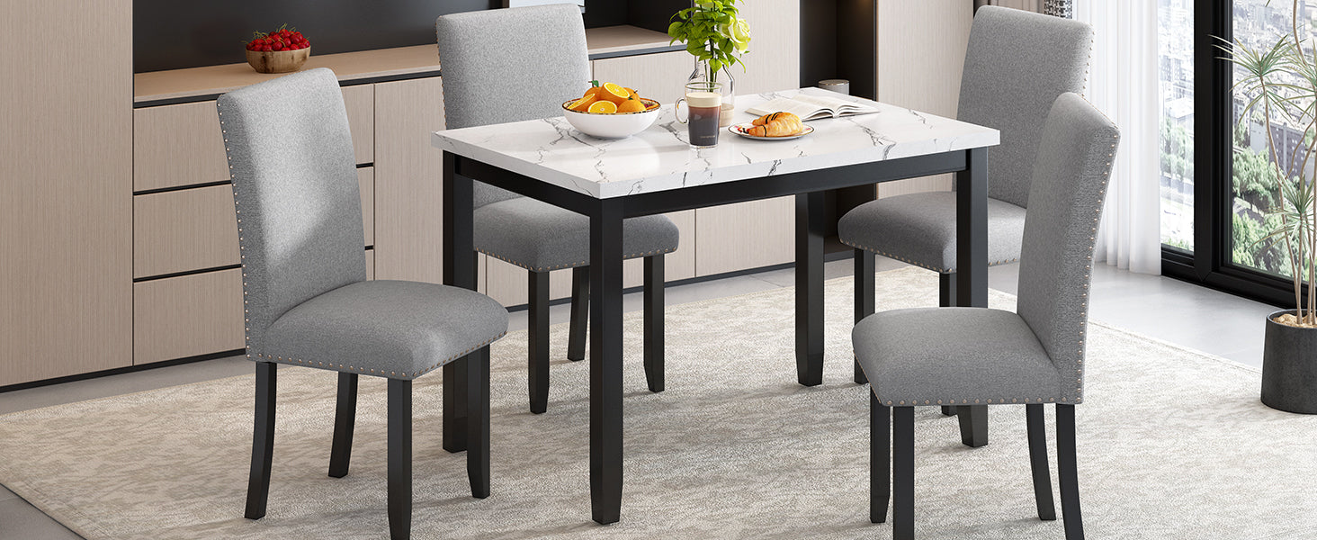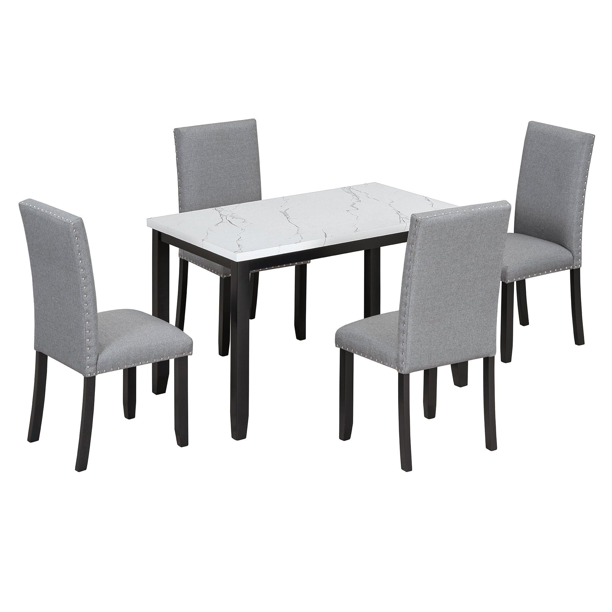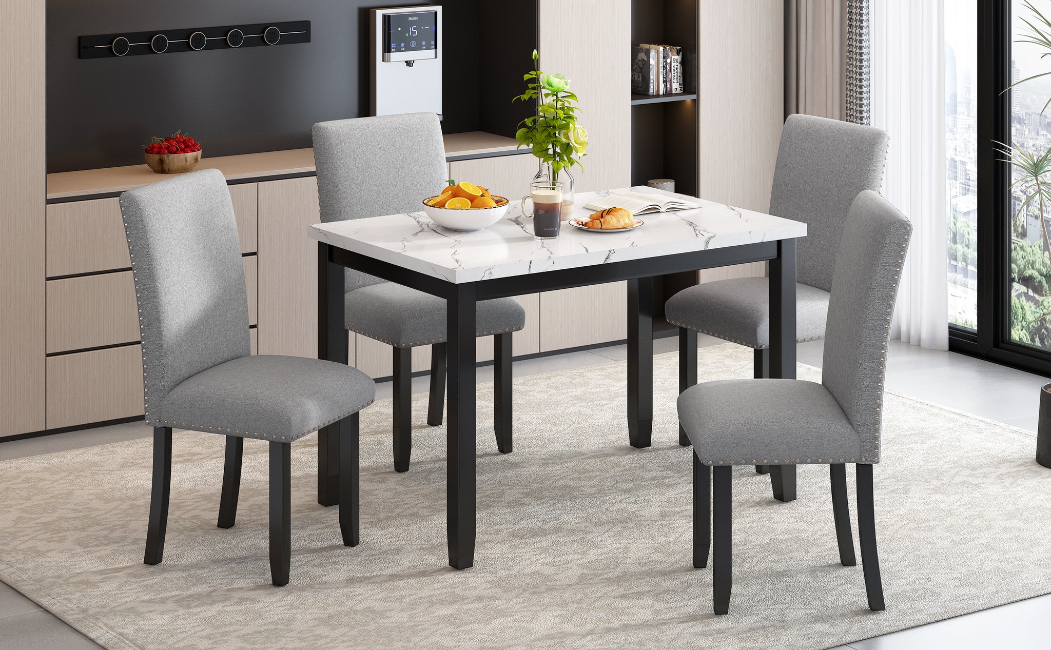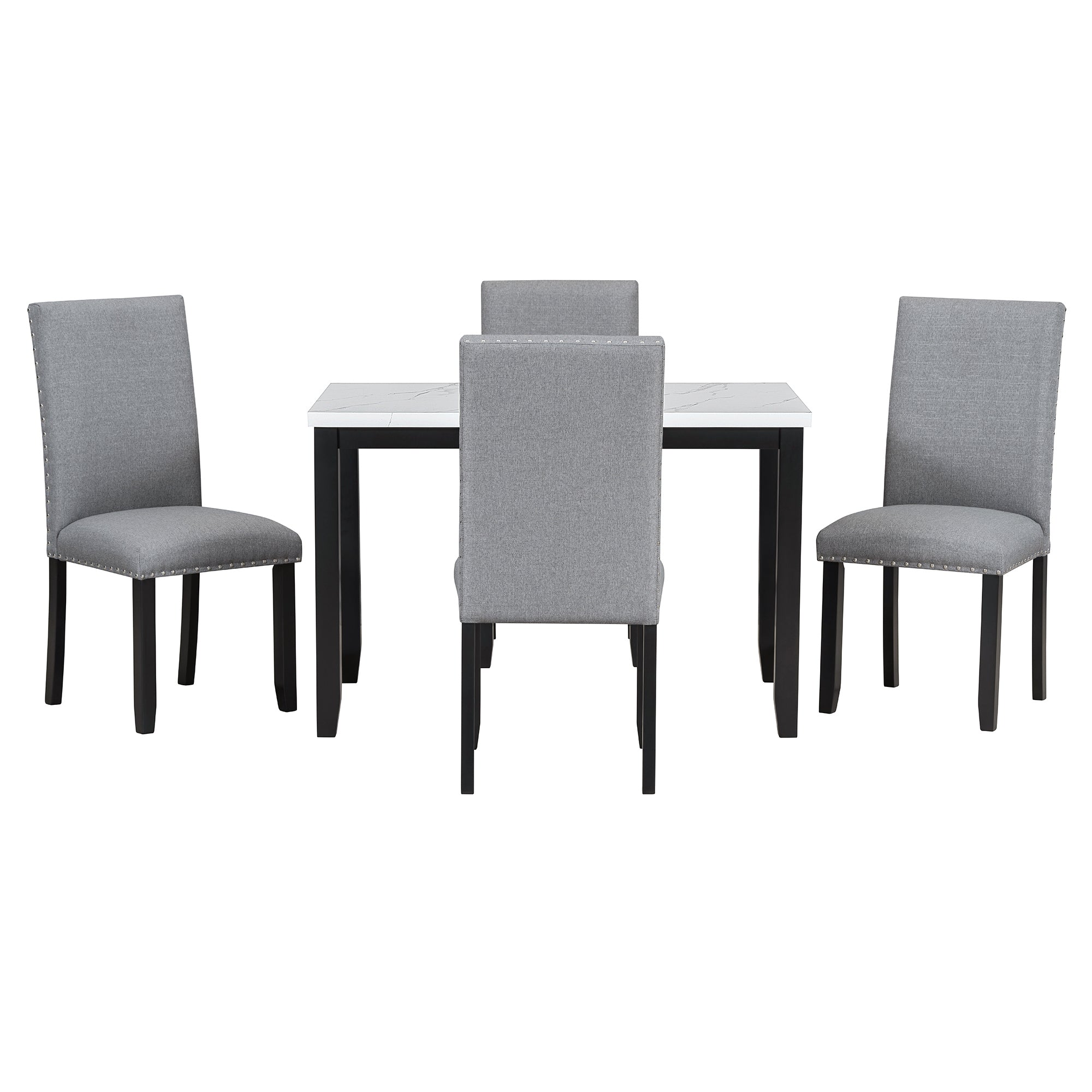 5-Piece Modern Marble Dining Table Set with Upholstered Chairs