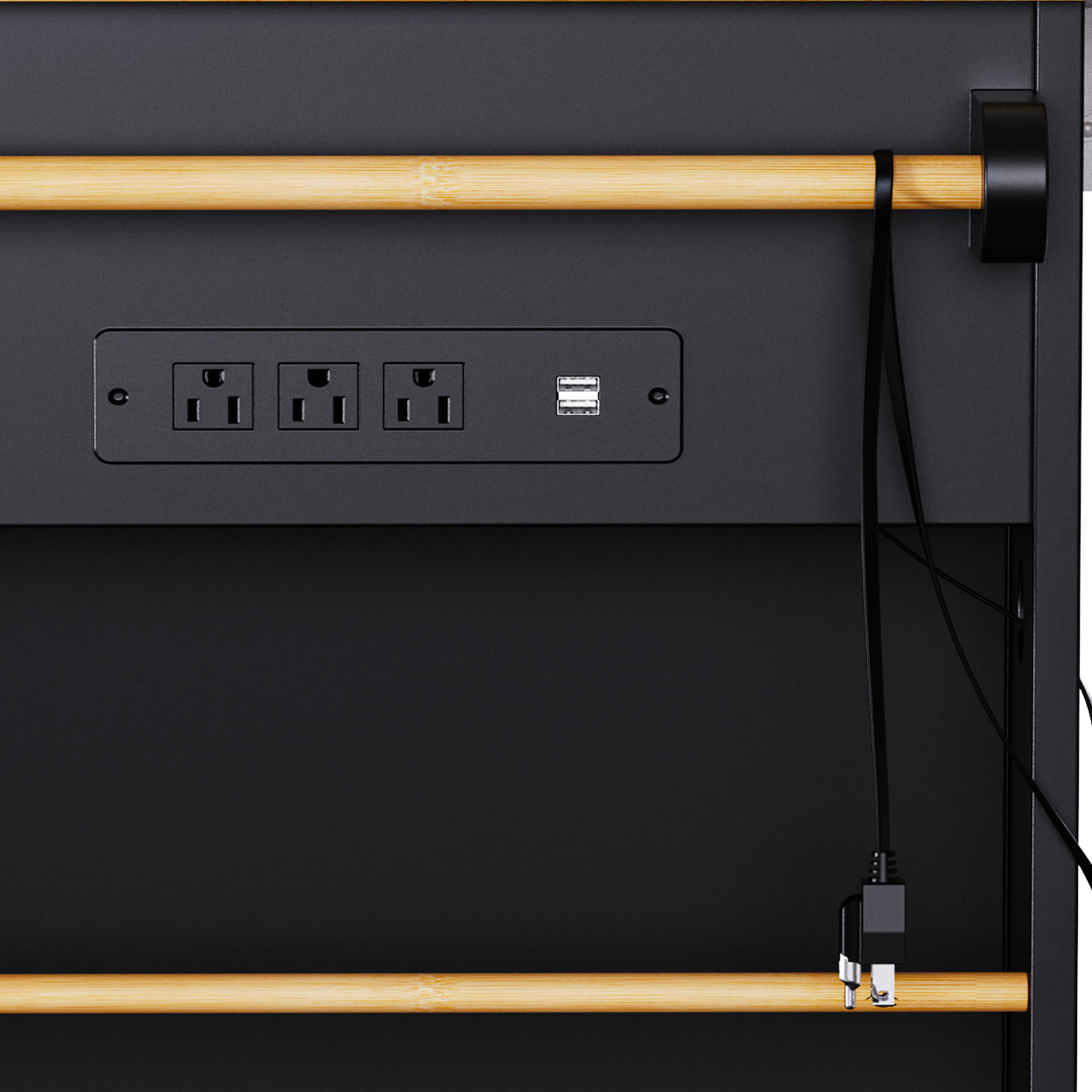 This exquisitely designed kitchen cart features a sophisticated built-in charging station, boasting 3 AC outlets and 2 USB ports to effortlessly accommodate all of your kitchen appliance power requirements.