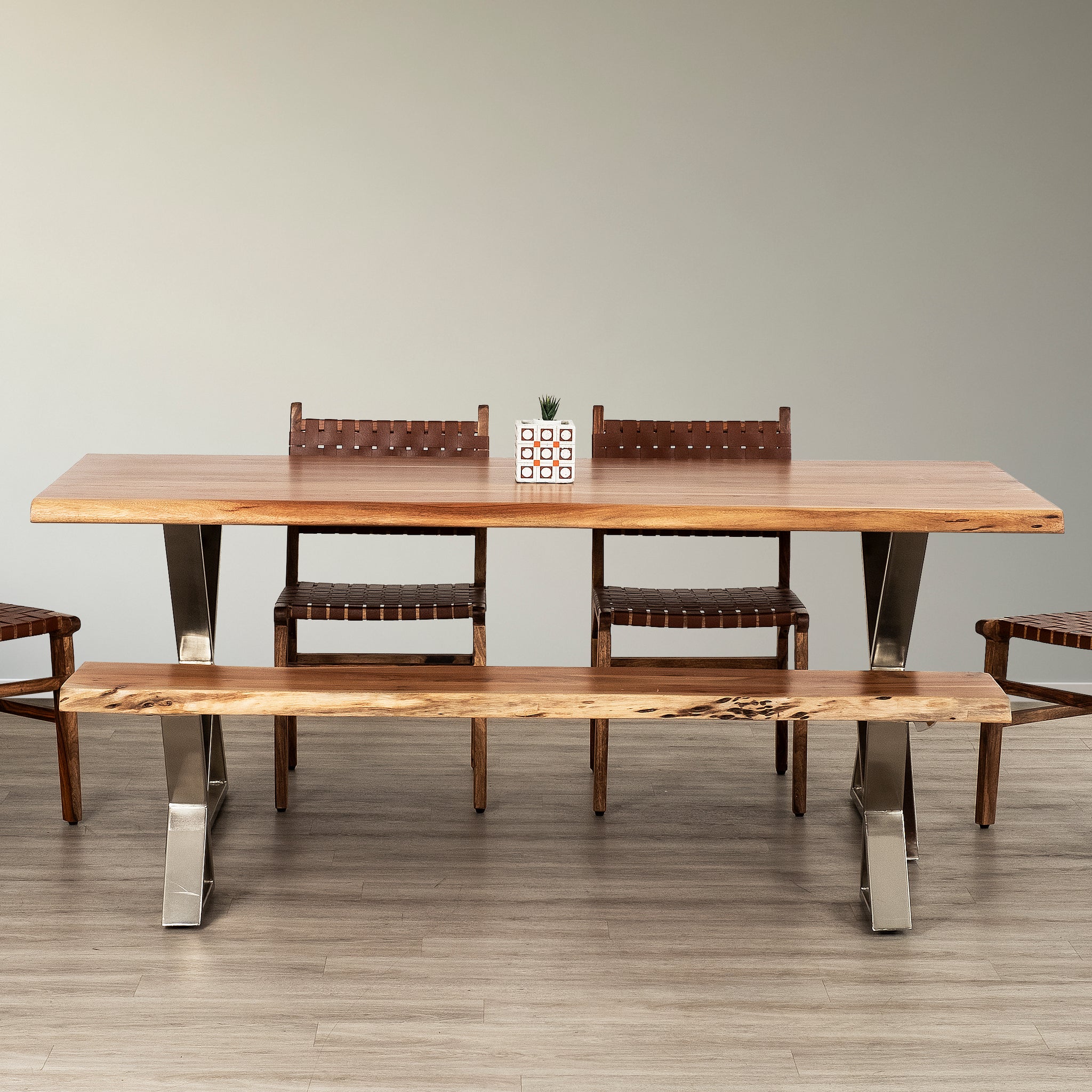 Out with the old and in with a fresh, rustic contemporary design style! This 70' Rustic Dining Table is set to impress with its natural acacia wood top that is not only water-resistant, but sustainable for the environment too. Its light brown wooden tones and chrome-plated metal legs ensure that the table will integrate seamlessly into your home. At 70' in length, you'll be able to comfortably seat 6-8 people - perfect for hosting intimate dinner parties. In addition, this is easy to assemble.