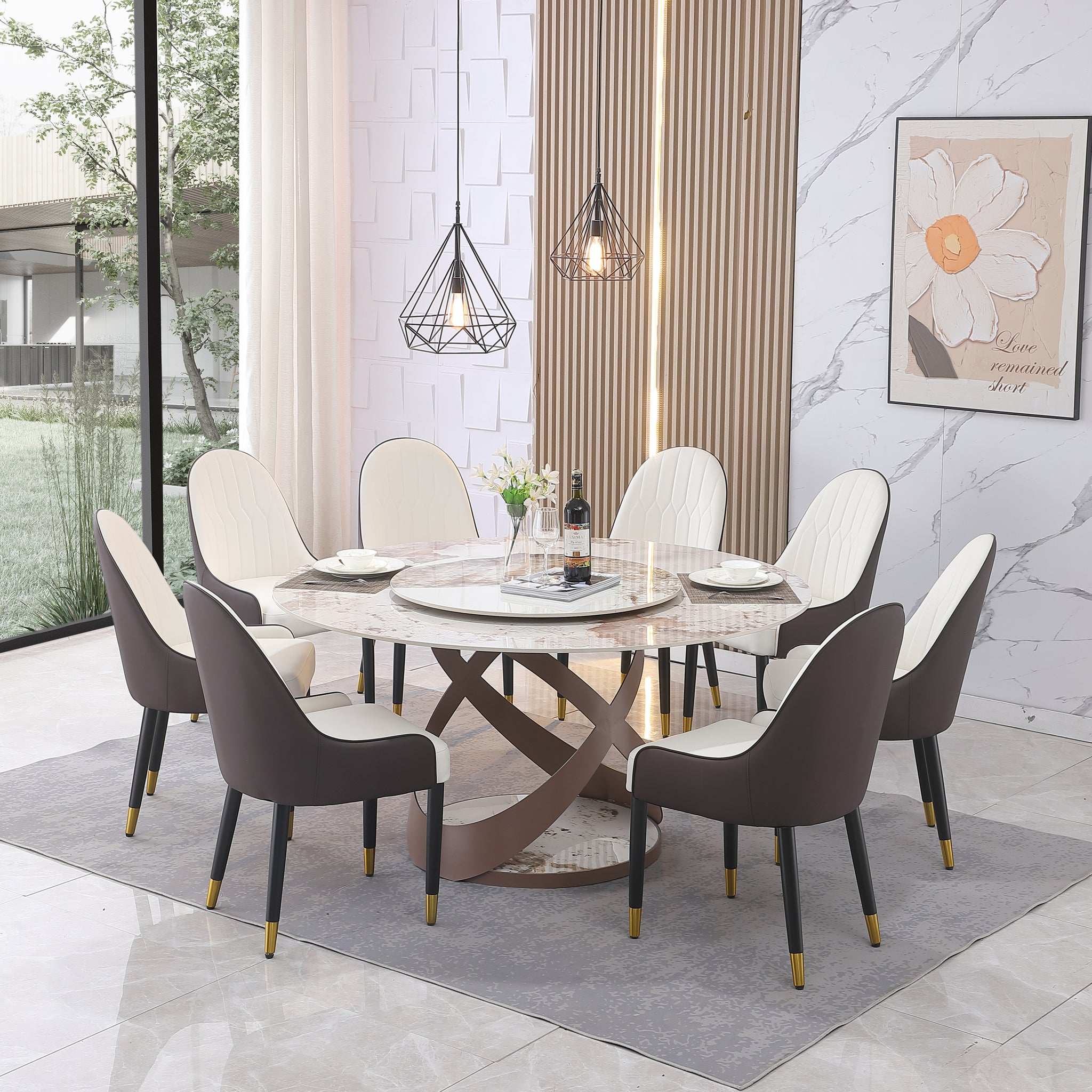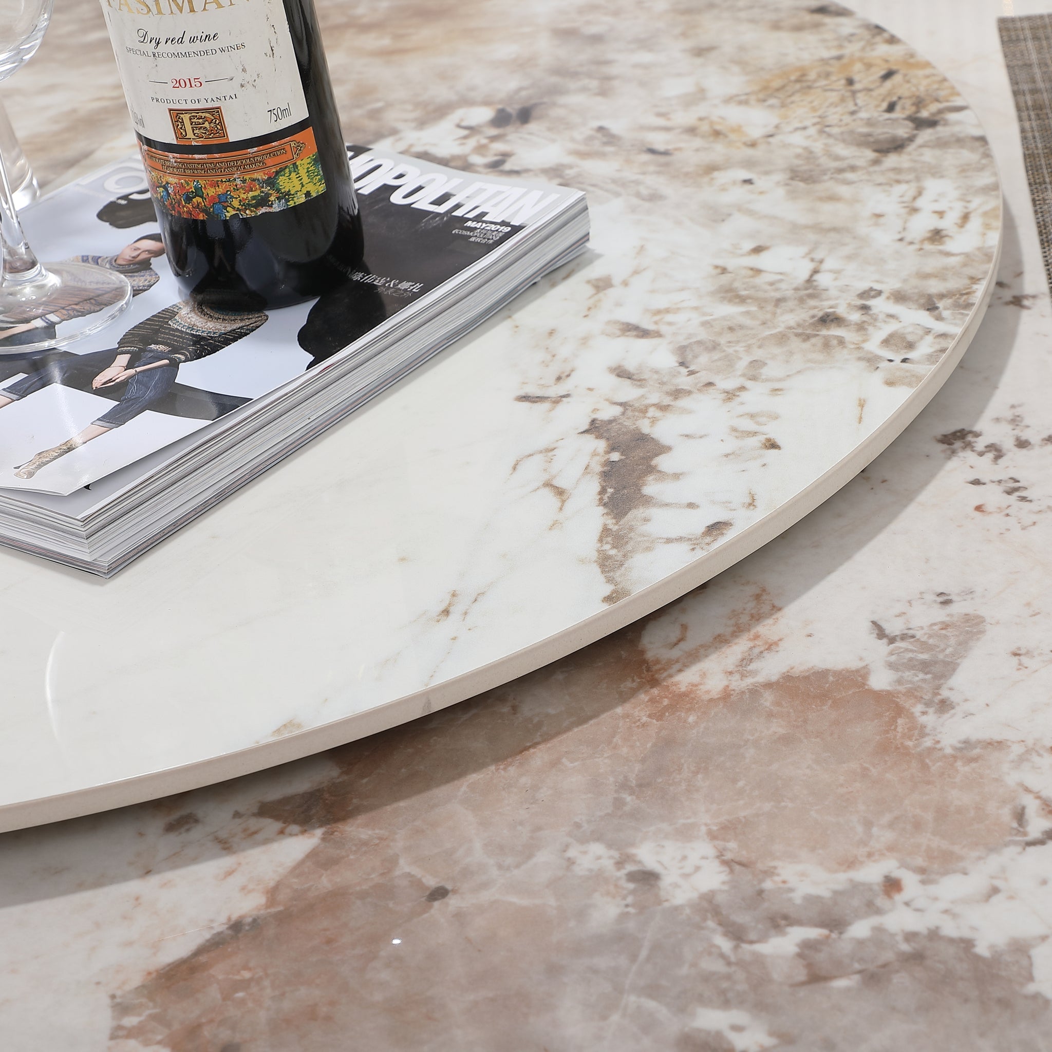 9-Piece 59″ Modern Sintered Stone Round Dining Table with 31.5″ Rotating Turntable & Metal Pedestal