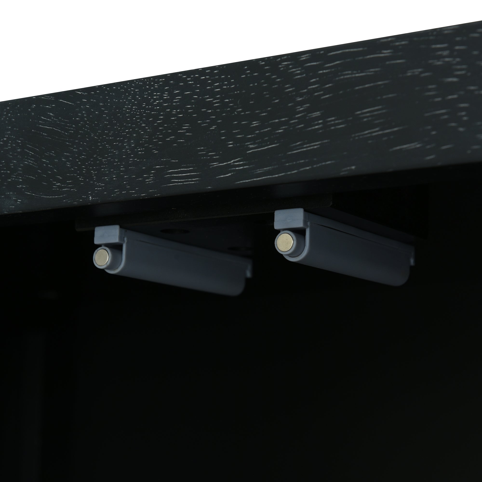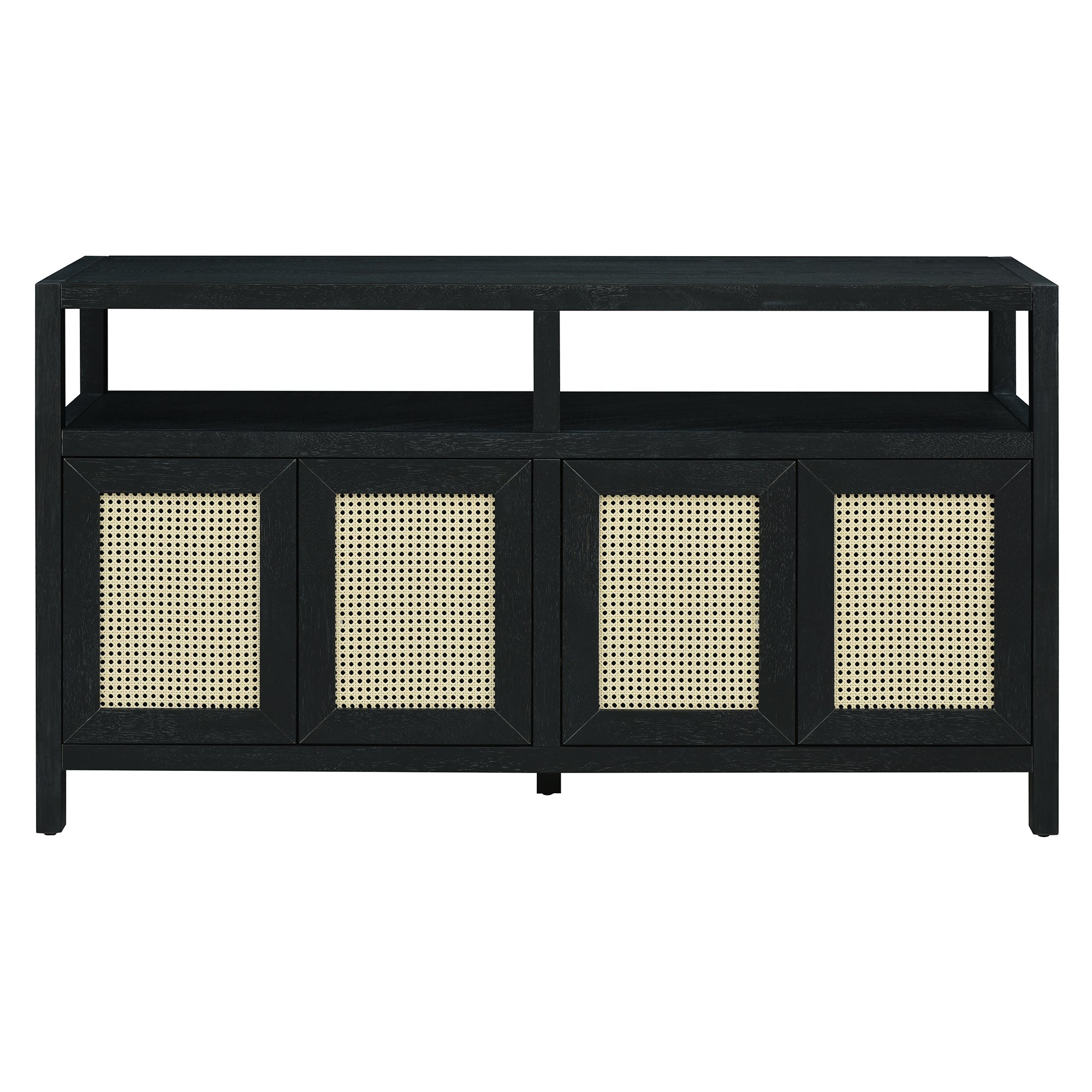 Bohemian Style Rattan Sideboard or Buffet Storage Cabinet with Solid Wood Frame, Black