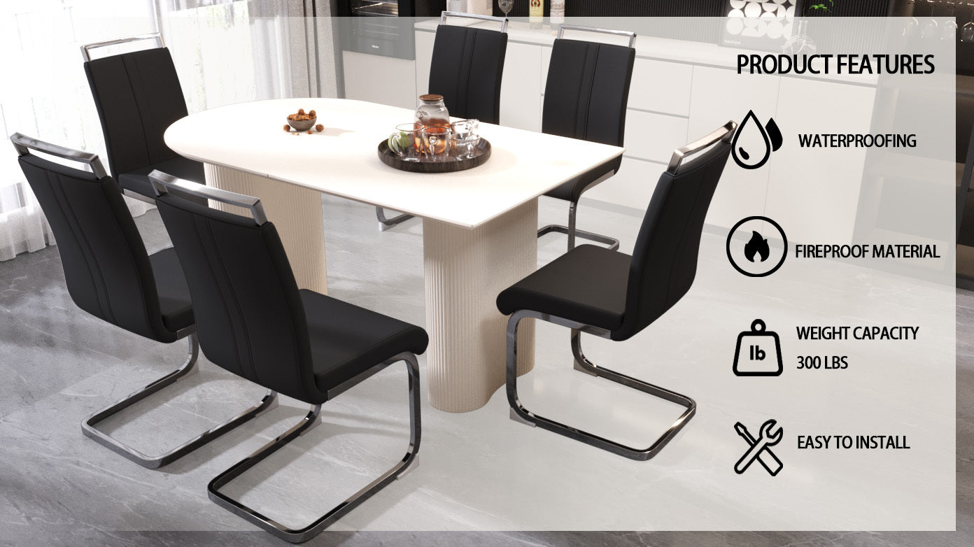 • Complete 7-Piece Set – Includes one 63" MDF table and four armless PU leather chairs.