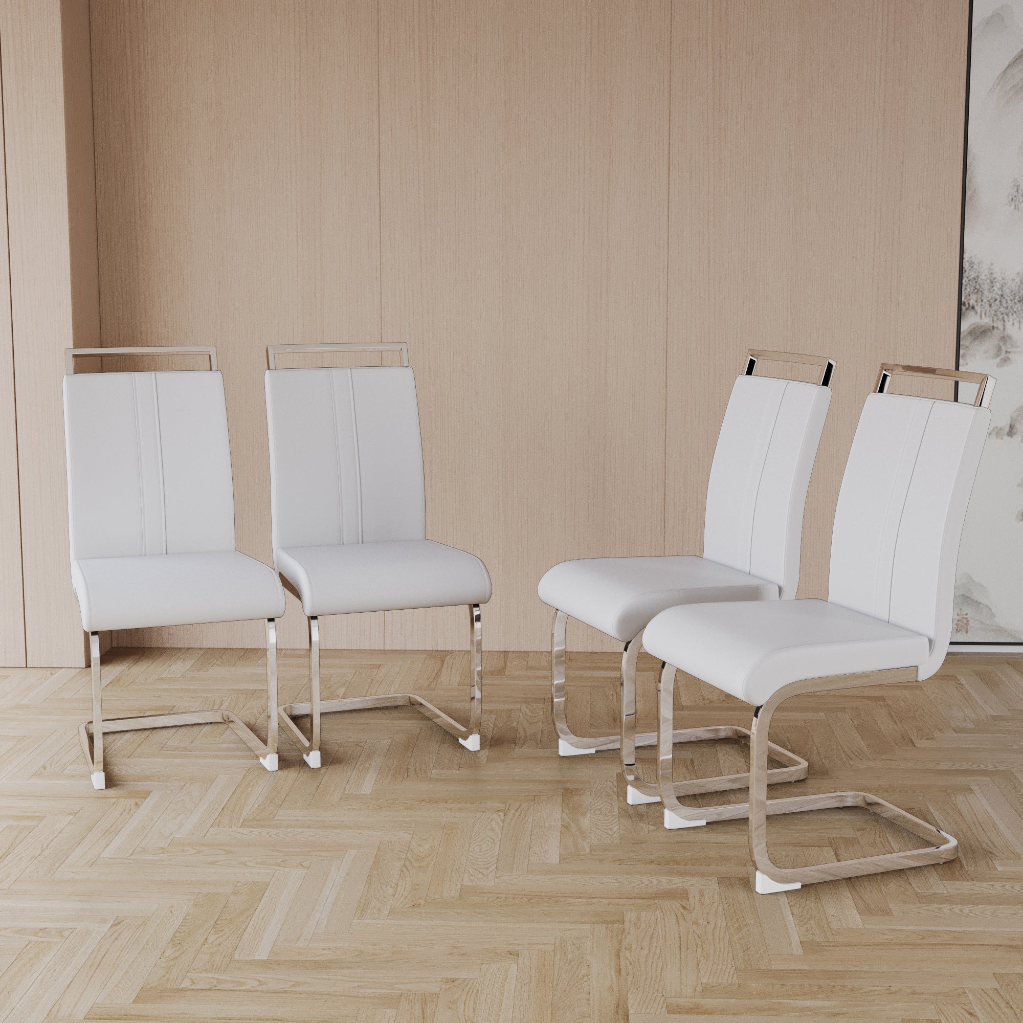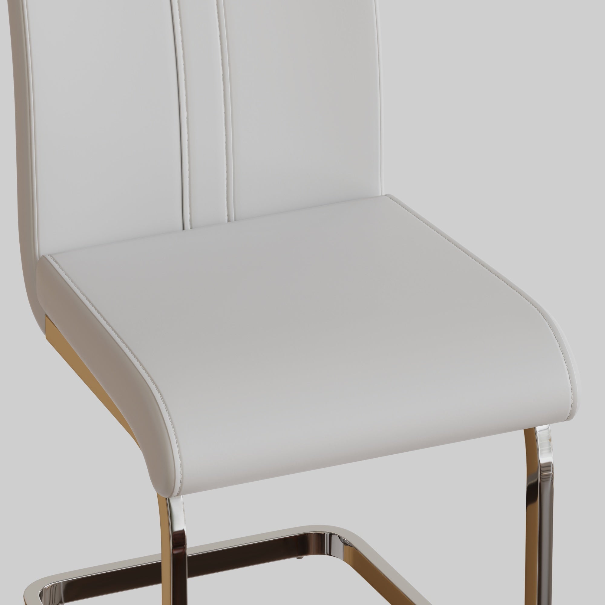 Bring timeless sophistication to your dining space with this 5-Piece Medieval Modern Cream Dining Set. Designed for both style and practicality, it includes a 63-inch MDF dining table and four PU leather armless chairs with silver-plated metal legs — ideal for both home and kitchen use.