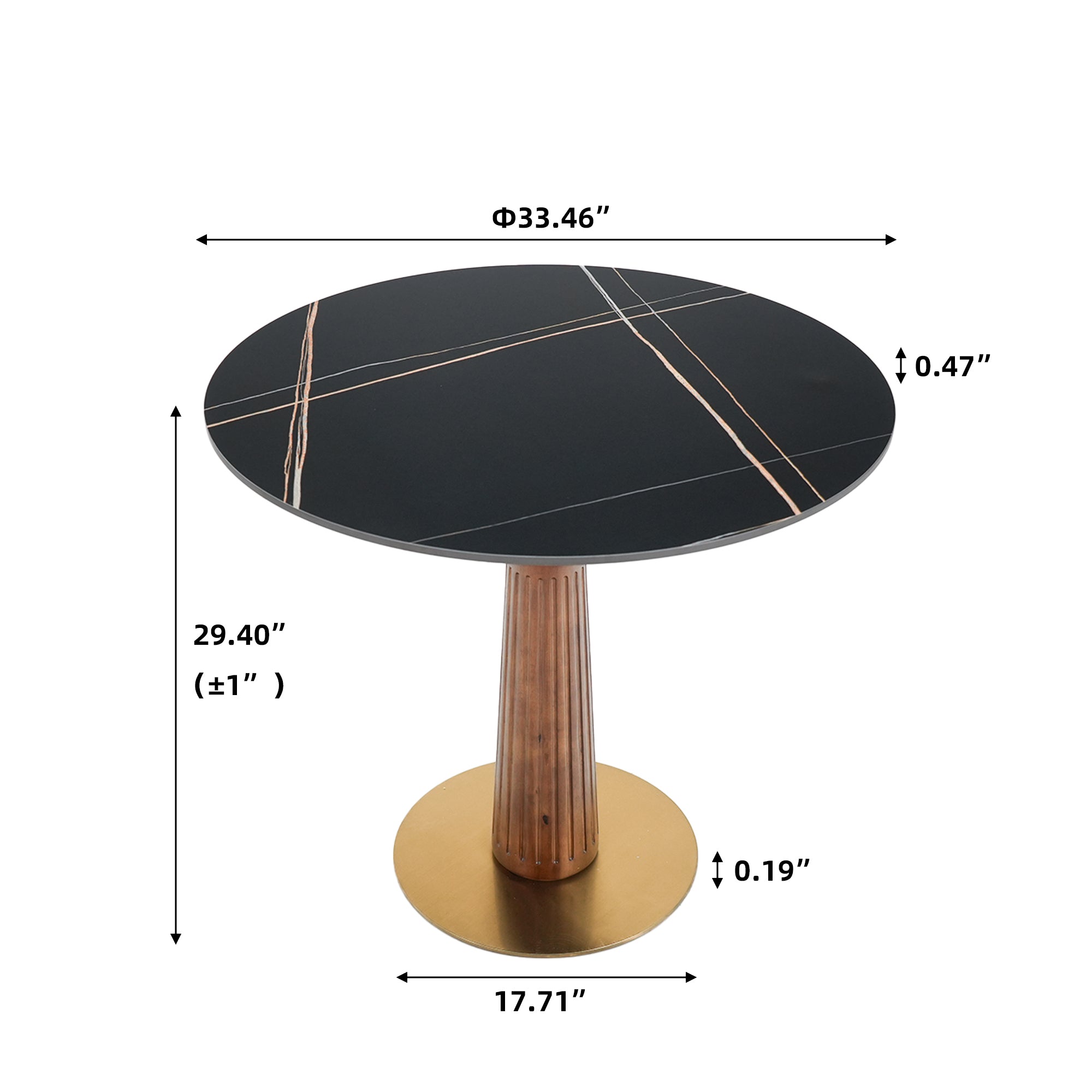 - Premium Materials & Stylish Design: Features a durable sintered stone tabletop—stain - resistant, scratch - proof, and easy to clean. Paired with a solid wooden leg and gold - finished base, blending modern elegance with mid - century charm, perfect for minimalist or contemporary home decor.