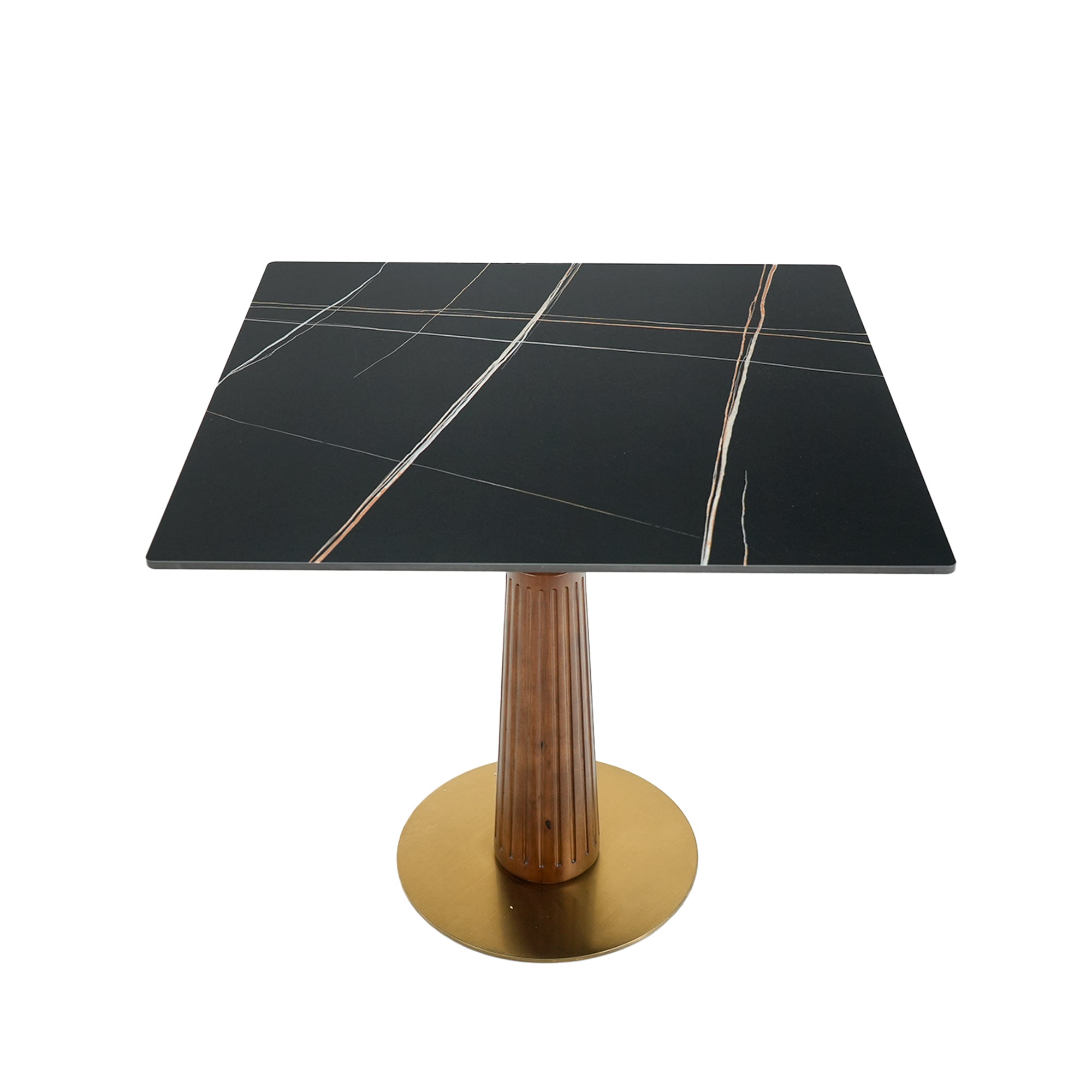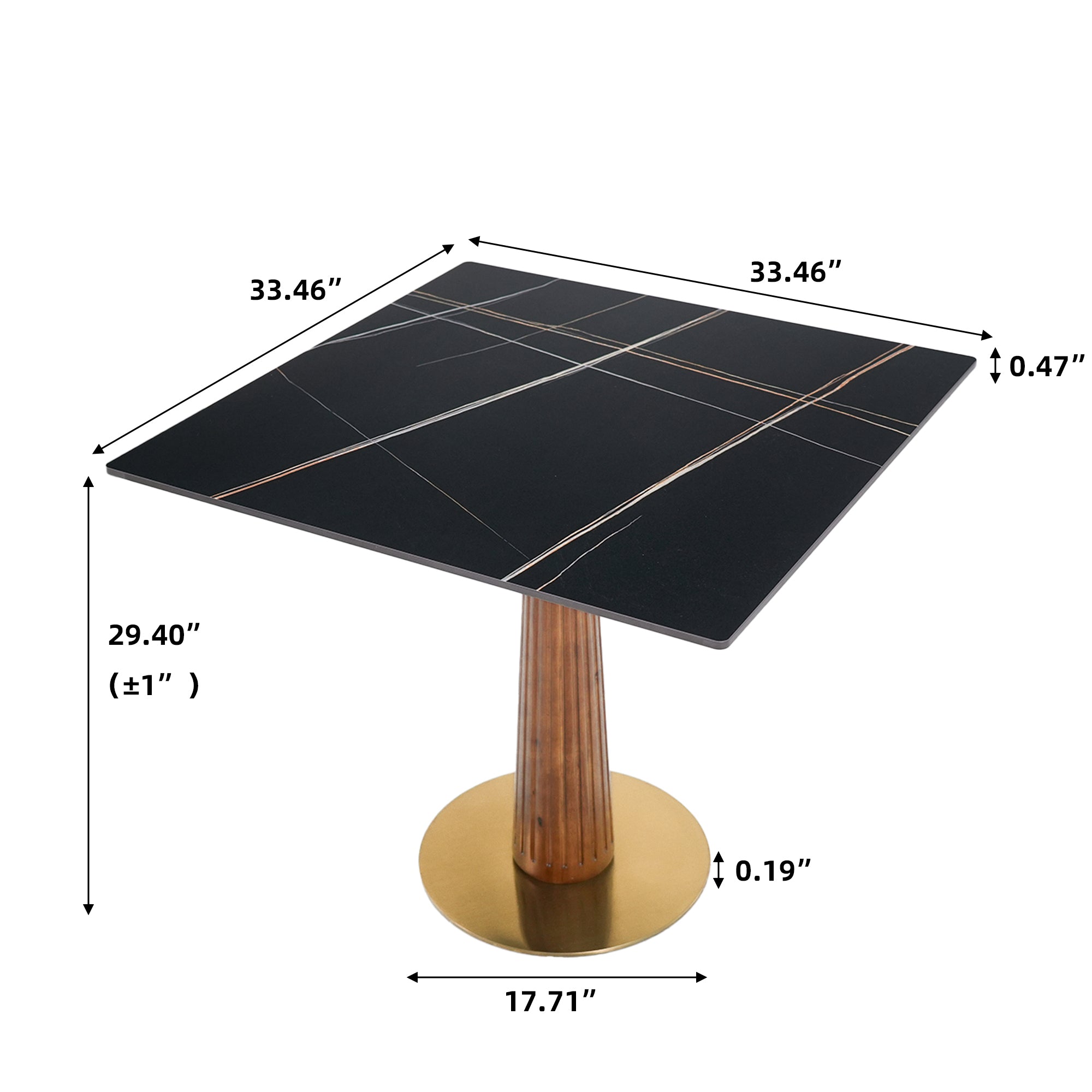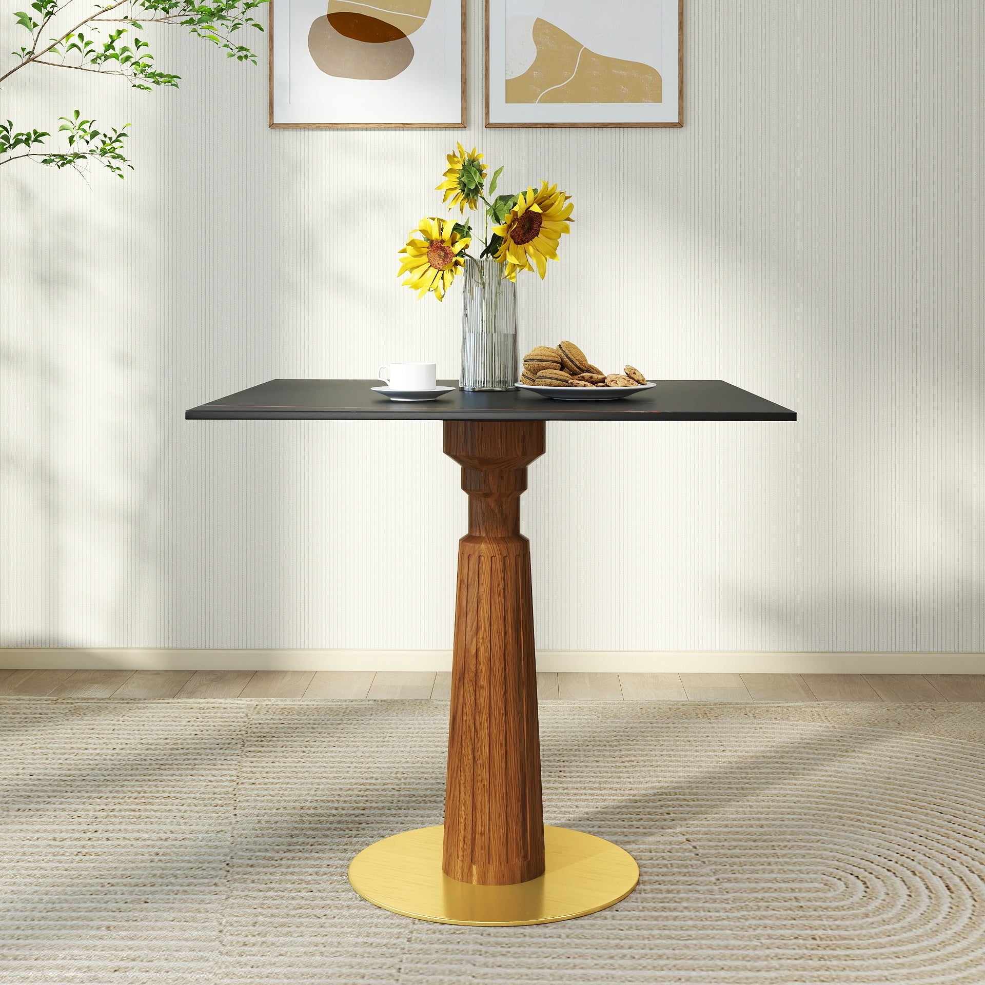- Premium Materials & Stylish Design: Features a durable sintered stone tabletop—stain - resistant, scratch - proof, and easy to clean. Paired with a solid wooden leg and gold - finished base, blending modern elegance with mid - century charm, perfect for minimalist or contemporary home decor.