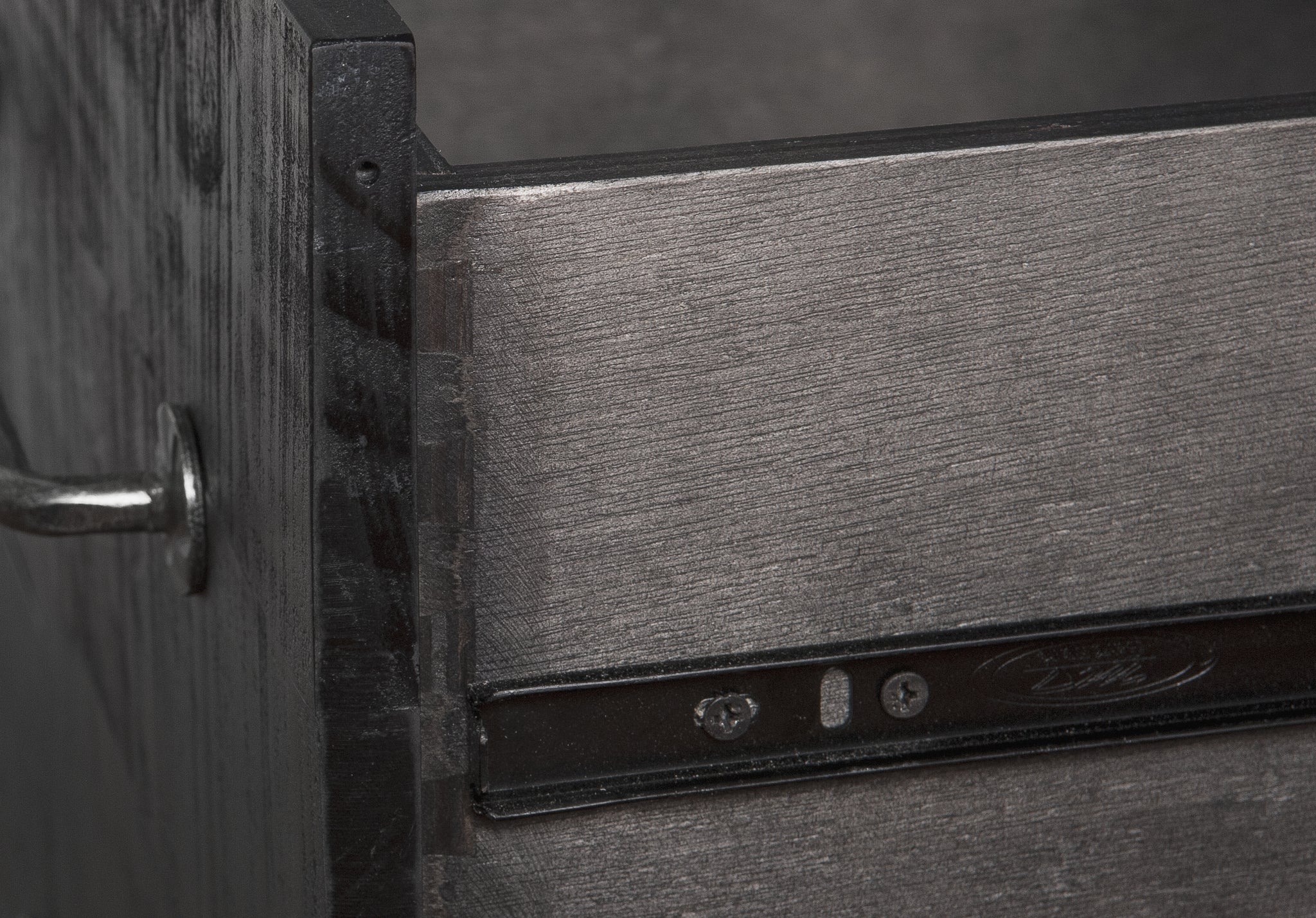 • Sanded & stained solid wood drawer boxes with front and rear English dovetail joinery for maximum rigidity and lasting quality; dust cover under bottom drawer; Full extension, ball bearing drawer slides for smooth, efficient operation and ample weight capacity